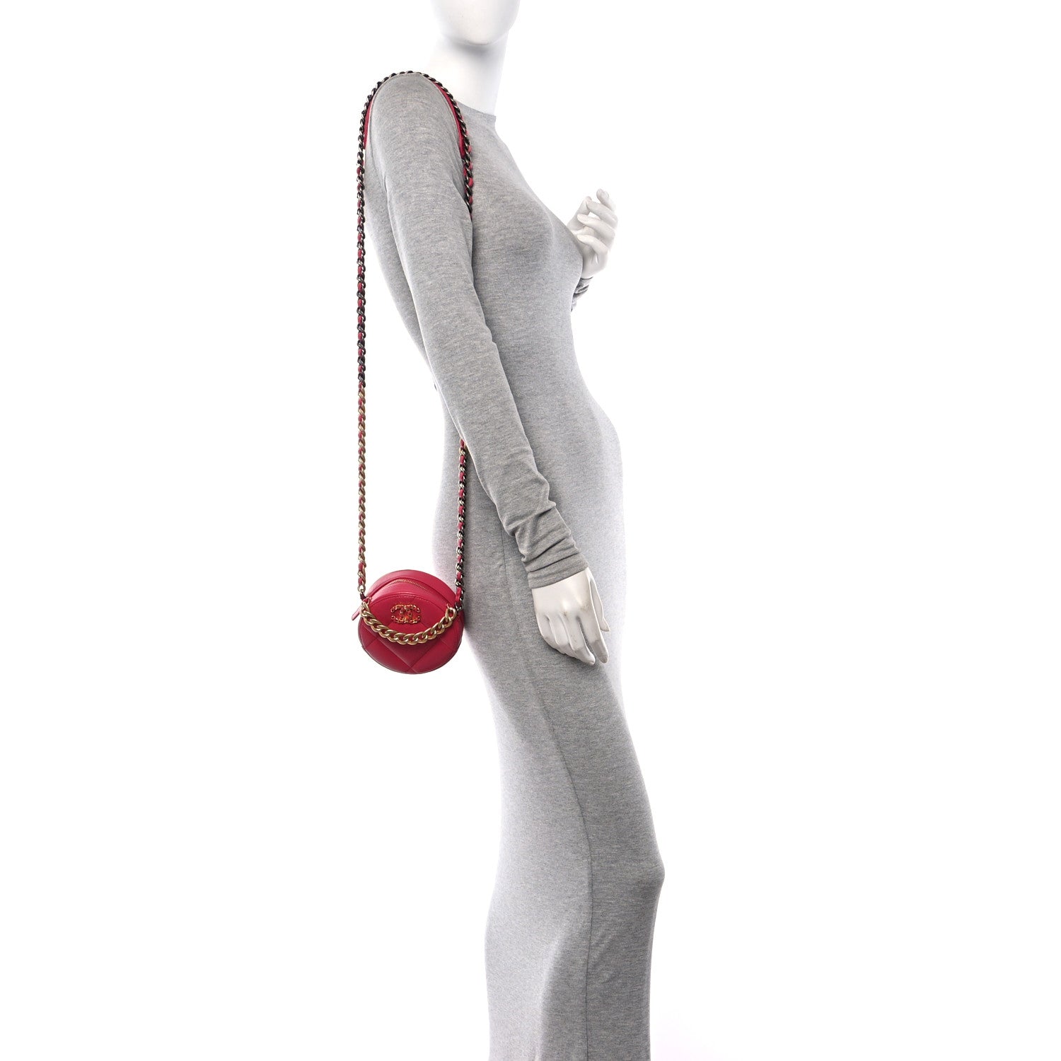 Goatskin Quilted Chanel 19 Round Clutch With Chain Dark Pink