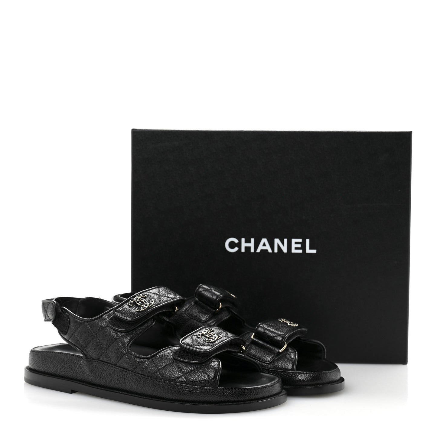 Chanel/ Accessories/ Shoes /Chanel Grained Calfskin Velcro Dad Sandals 38 Black