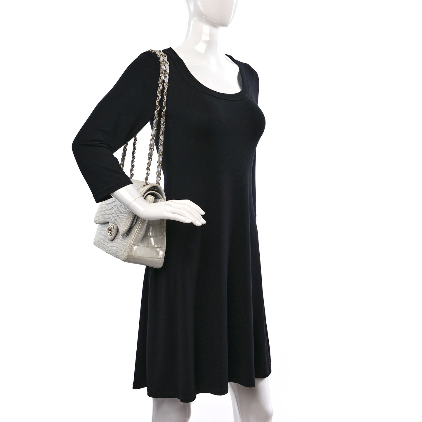Chanel/ Bags/ Shoulder Bags /Chanel Iridescent Alligator Jumbo Double Flap Light Grey