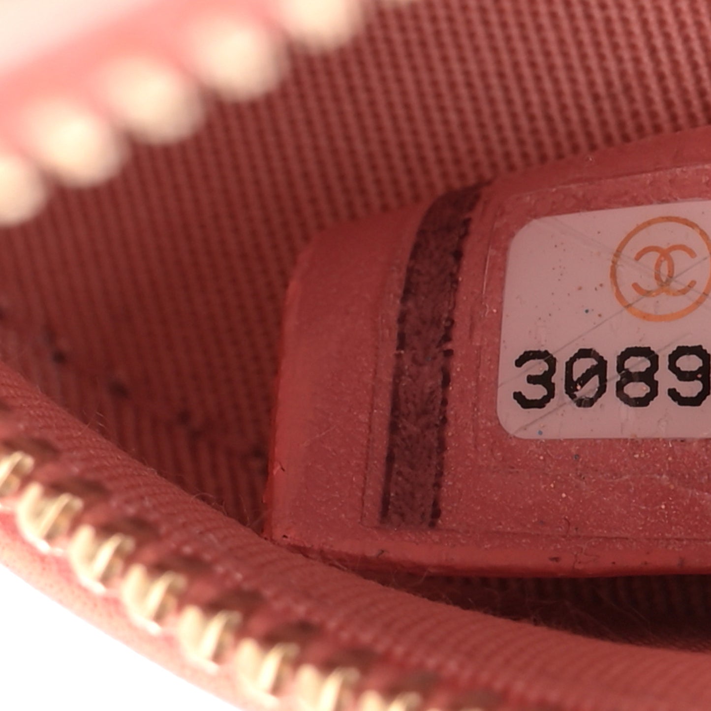 This is an authentic CHANEL Iridescent Calfskin Quilted Chanel 19 Round Clutch With Chain in Pink. This chic shoulder bag is crafted of pink shimmery calfskin diamond-stitched leather. This round handbag features a leather threaded chain-link shoulder strap and a Chanel CC logo on the front. The zipper opens to a pink fabric interior with a small pocket.Follow this item for alerts. Chanel is a registered trademark of Chanel. FASHIONPHILE is not affiliated with Chanel.