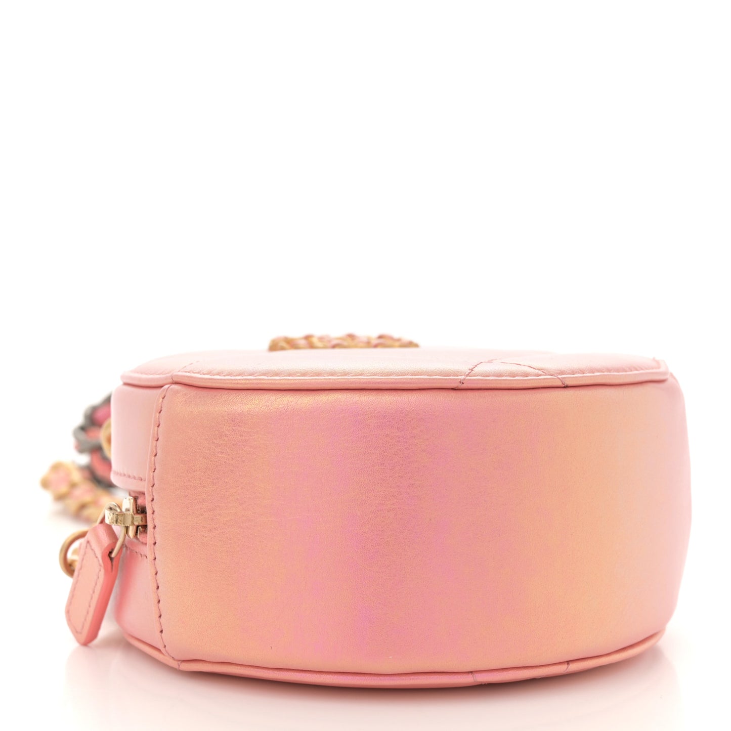Iridescent Calfskin Quilted Chanel 19 Round Clutch With Chain Pink