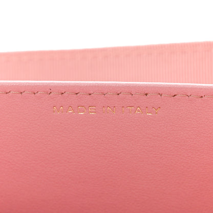 Iridescent Caviar Flap Quilted Card Holder Wallet Pink