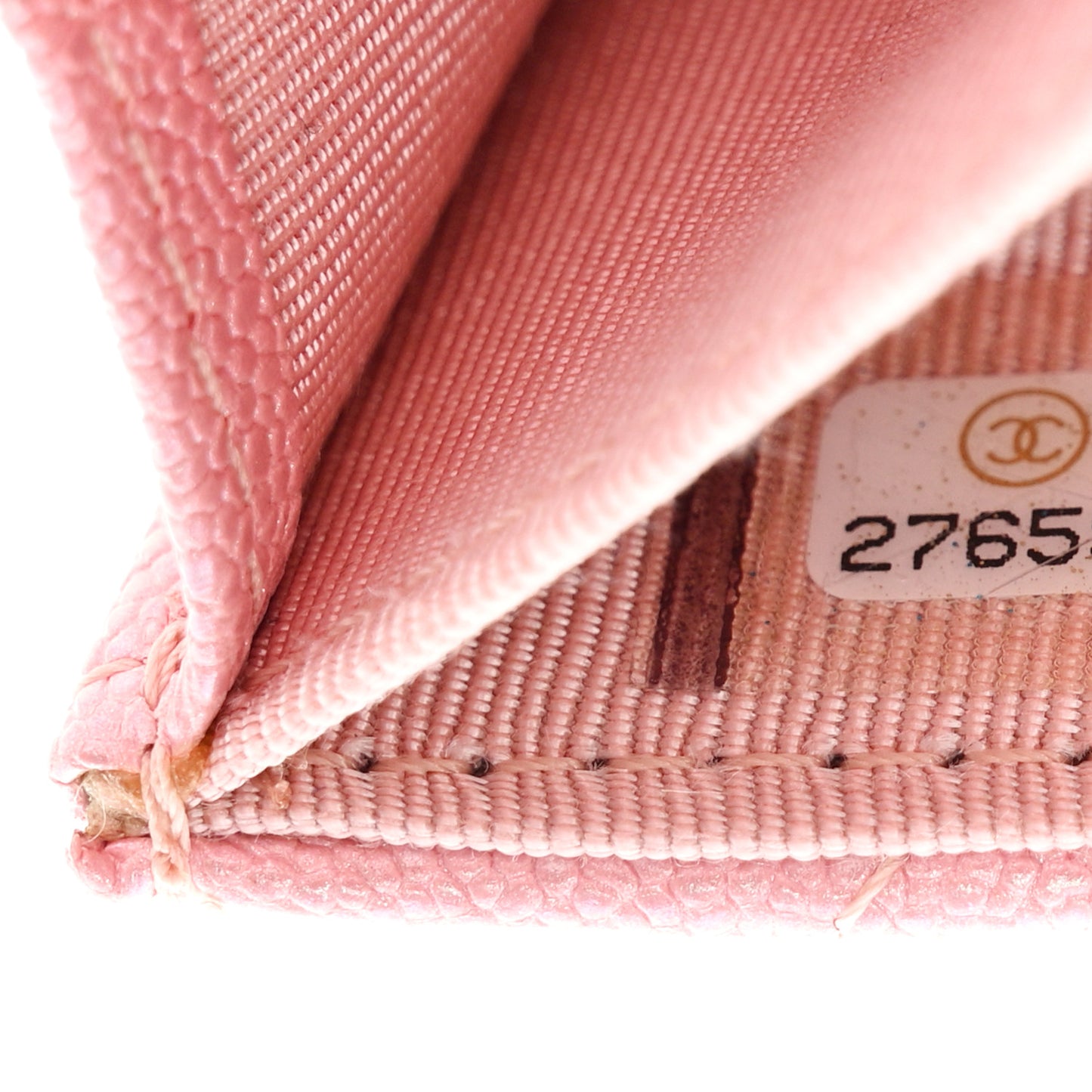 This is an authentic CHANEL Iridescent Caviar Flap Quilted Card Holder Wallet in Pink. This stylish wallet is crafted of diamond-quilted caviar leather in iridescent pink. The crossover flap features a polished light gold CC logo and opens to a partitioned pink fabric interior.Follow this item for alerts. Chanel is a registered trademark of Chanel. FASHIONPHILE is not affiliated with Chanel.