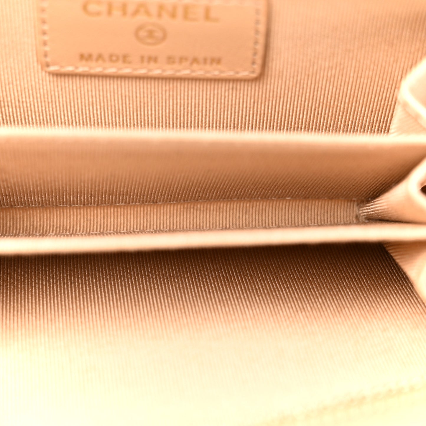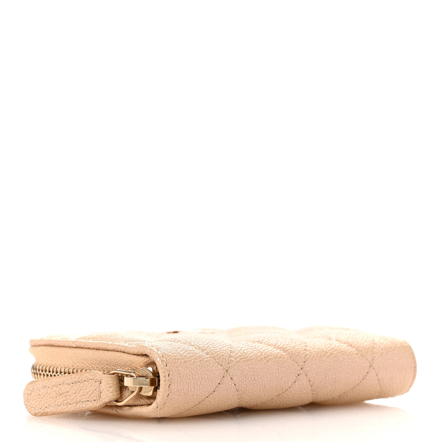 This is an authentic CHANEL Iridescent Caviar Quilted Zip Around Coin Purse in Beige. This petite wallet is crafted of iridescent, beige caviar leather. The purse features a polished light gold wrap-around zipper that opens to a partitioned matching fabric interior.Follow this item for alerts. Chanel is a registered trademark of Chanel. FASHIONPHILE is not affiliated with Chanel.