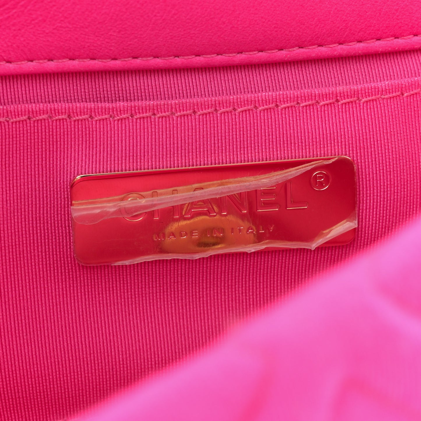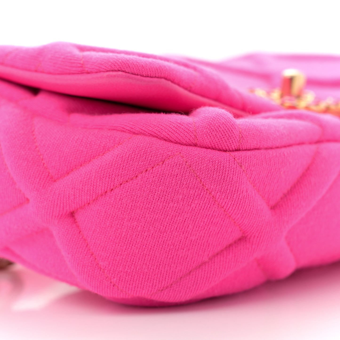 This is an authentic CHANEL Jersey Quilted Chanel 19 Waist Bag in Pink. This stylish waist bag is finely crafted of diamond-stitched neon pink fabric. The bag features a matching belt, a front flap, and an aged gold embellished CC turn lock. This opens to a fabric interior with a patch pocket.Follow this item for alerts. Chanel is a registered trademark of Chanel. FASHIONPHILE is not affiliated with Chanel.