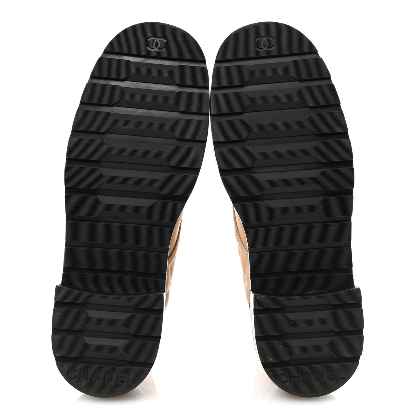 Chanel/ Accessories/ Shoes /Chanel Lambskin Calfskin Quilted Lace Up Combat Boots 41 Beige Black