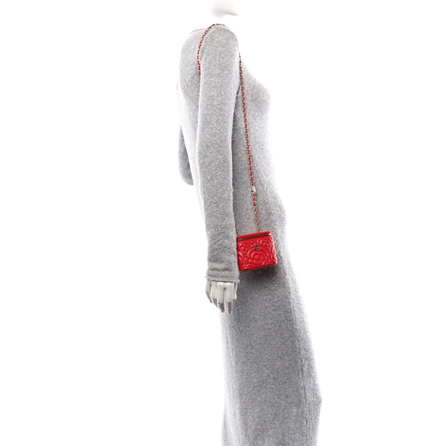 Lambskin Camellia Embossed Mini Vanity Case With Chain Red