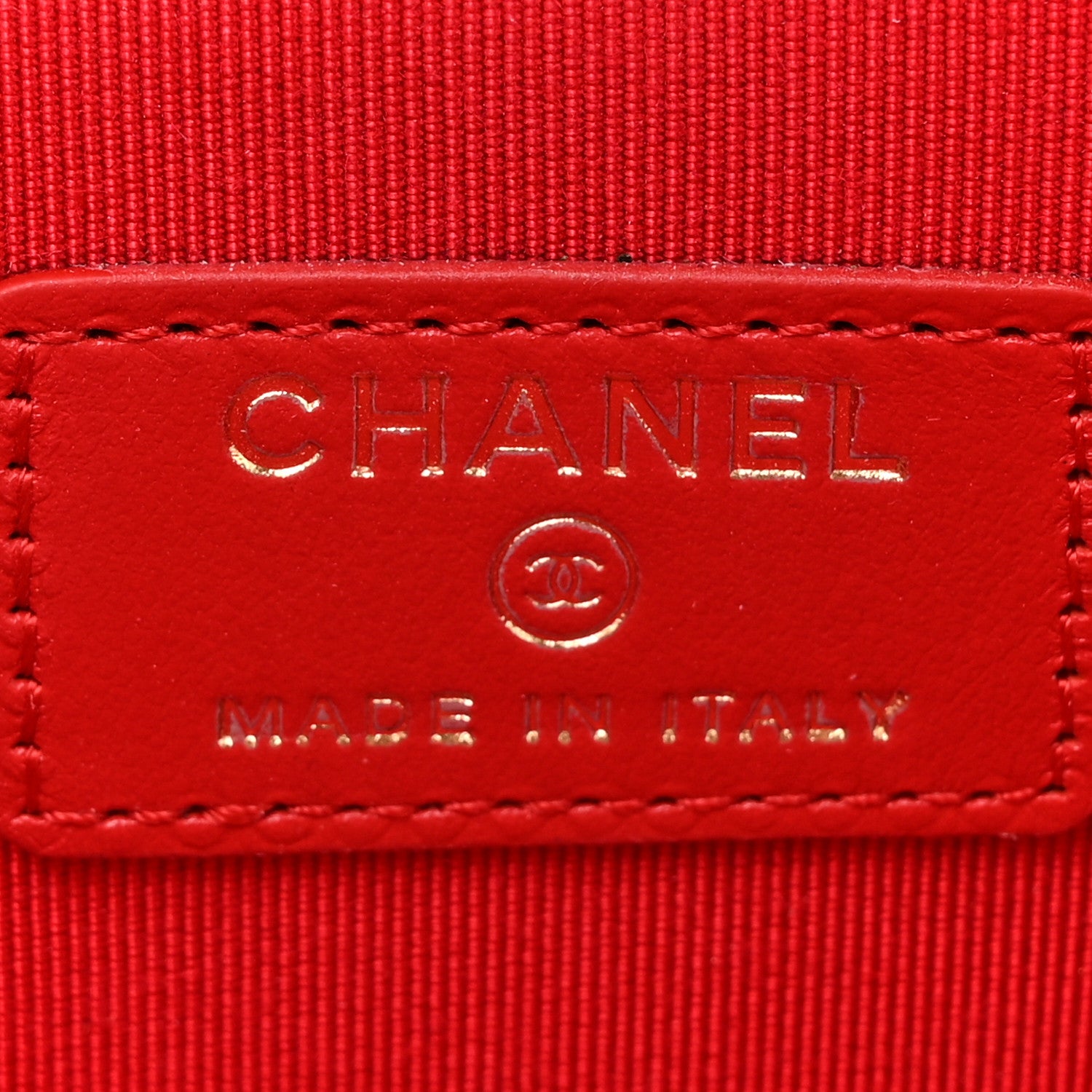 Chanel/ Bags/ Clutch & Evening /Chanel Lambskin Camellia Embossed Mini Vanity Case With Chain Red