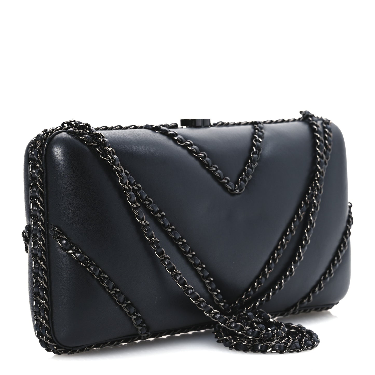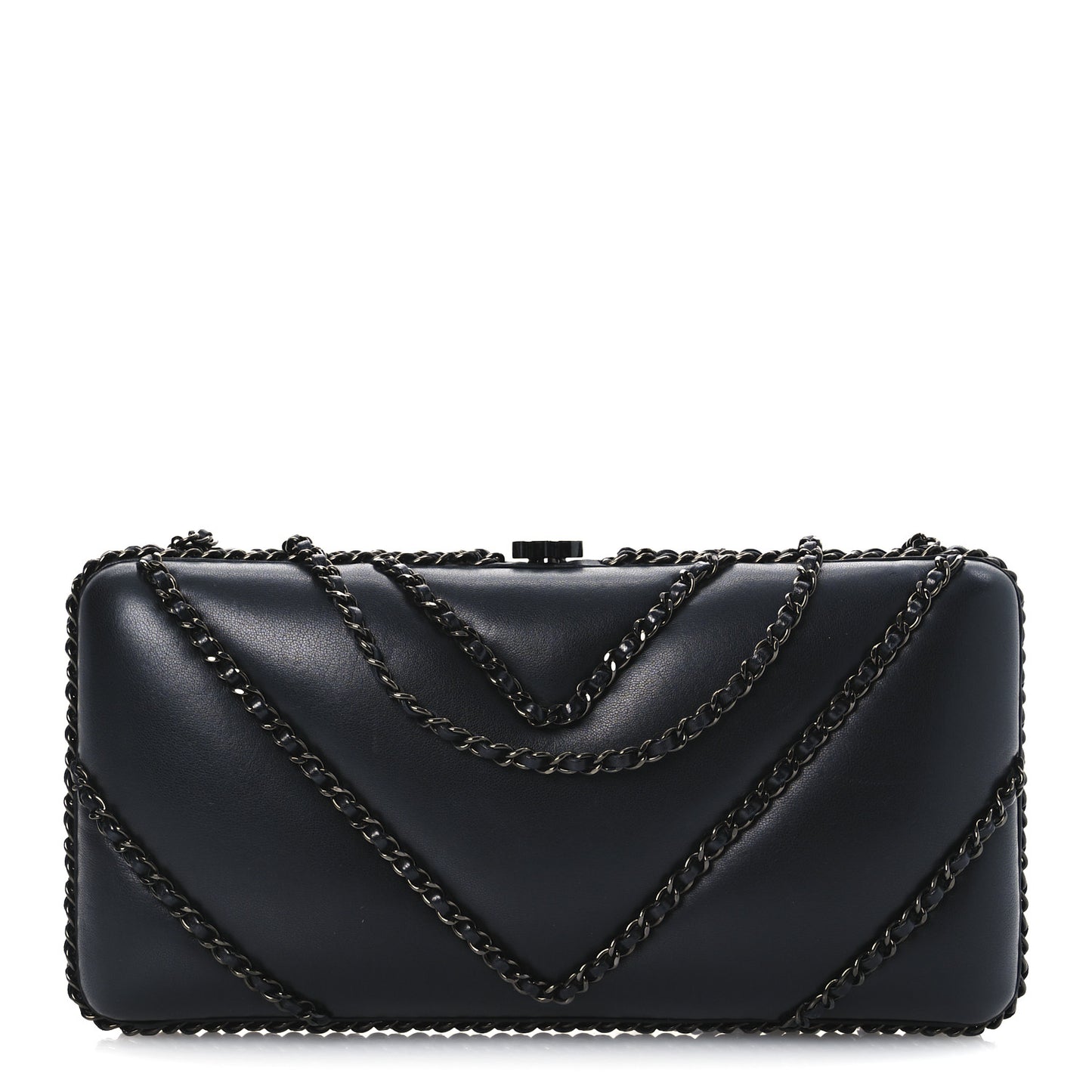 Chanel/ Bags/ Shoulder Bags /Chanel Lambskin Chevron Quilted Chain Around Clutch Black