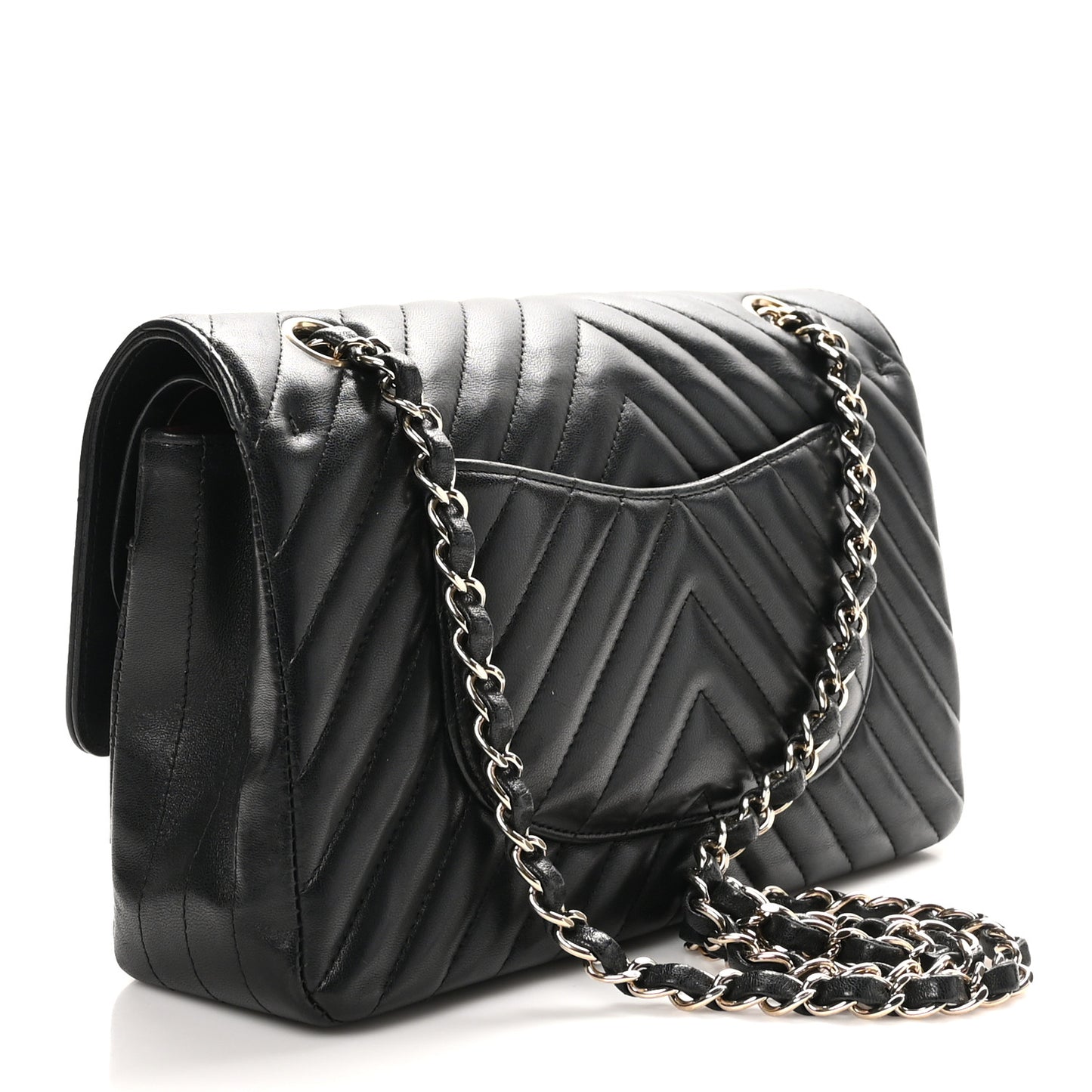 Chanel/ Bags/ Shoulder Bags /Chanel Lambskin Chevron Quilted Medium Double Flap Black