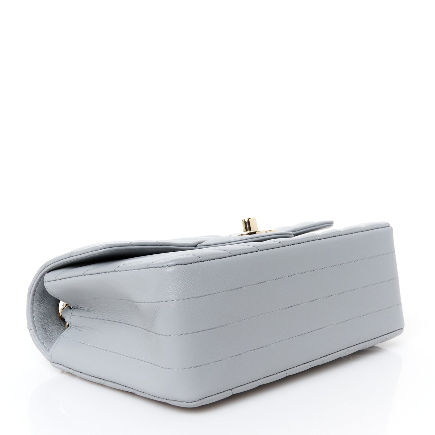 Lambskin Chevron Quilted Mini Rectangular Flap Grey