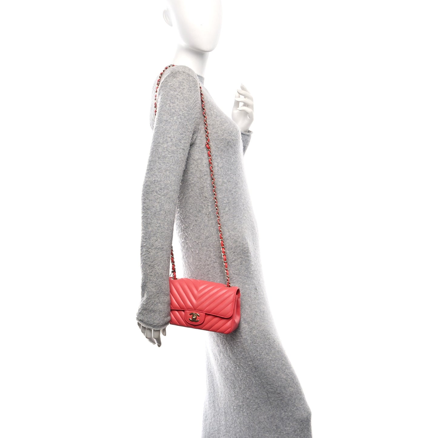 Chanel/ Bags/ Shoulder Bags /Chanel Lambskin Chevron Quilted Mini Rectangular Flap Pink