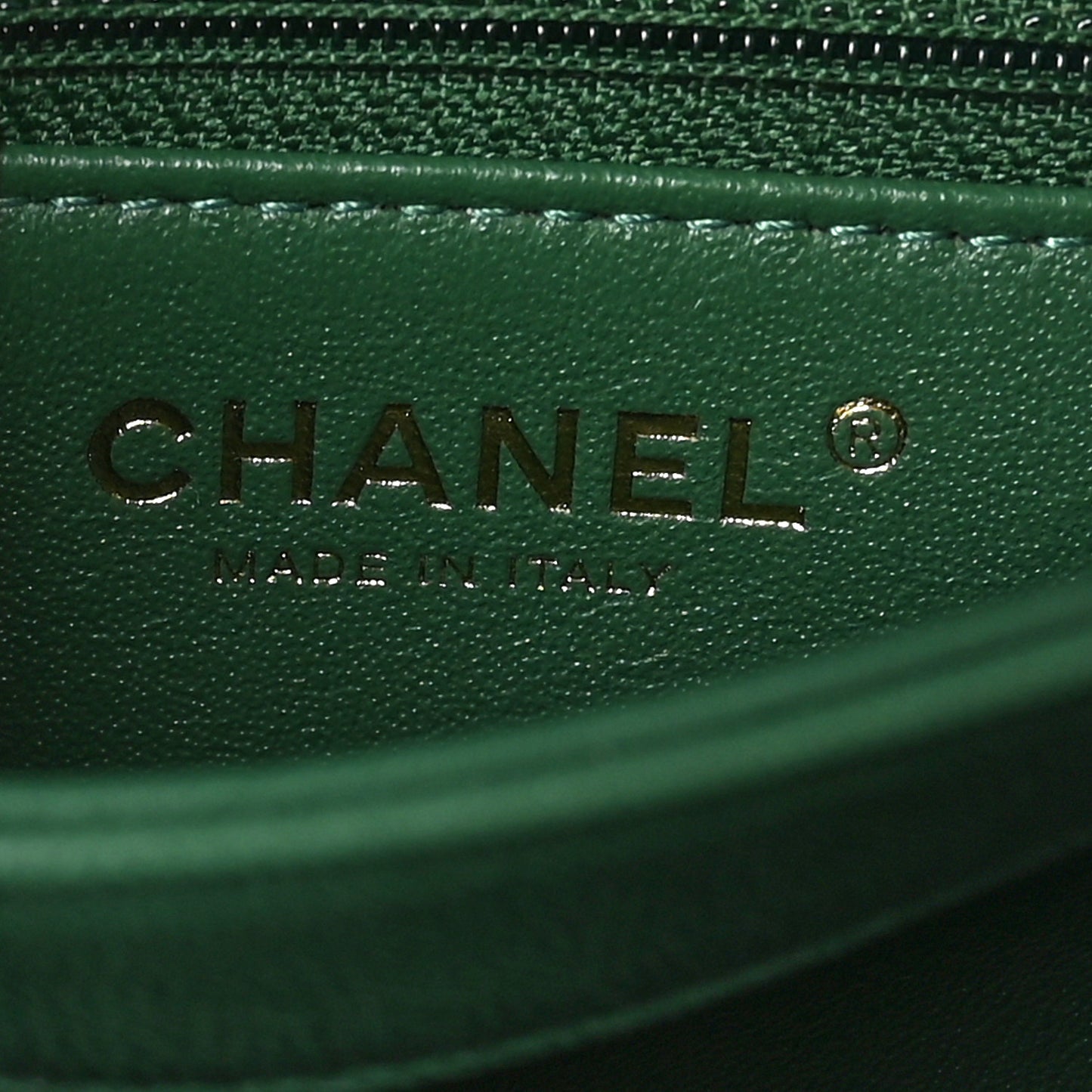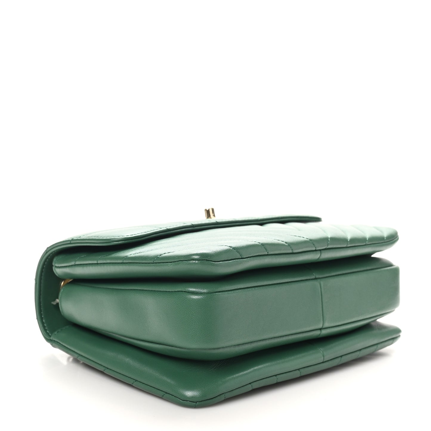 Lambskin Chevron Quilted Small Trendy CC Dual Handle Flap Bag Green