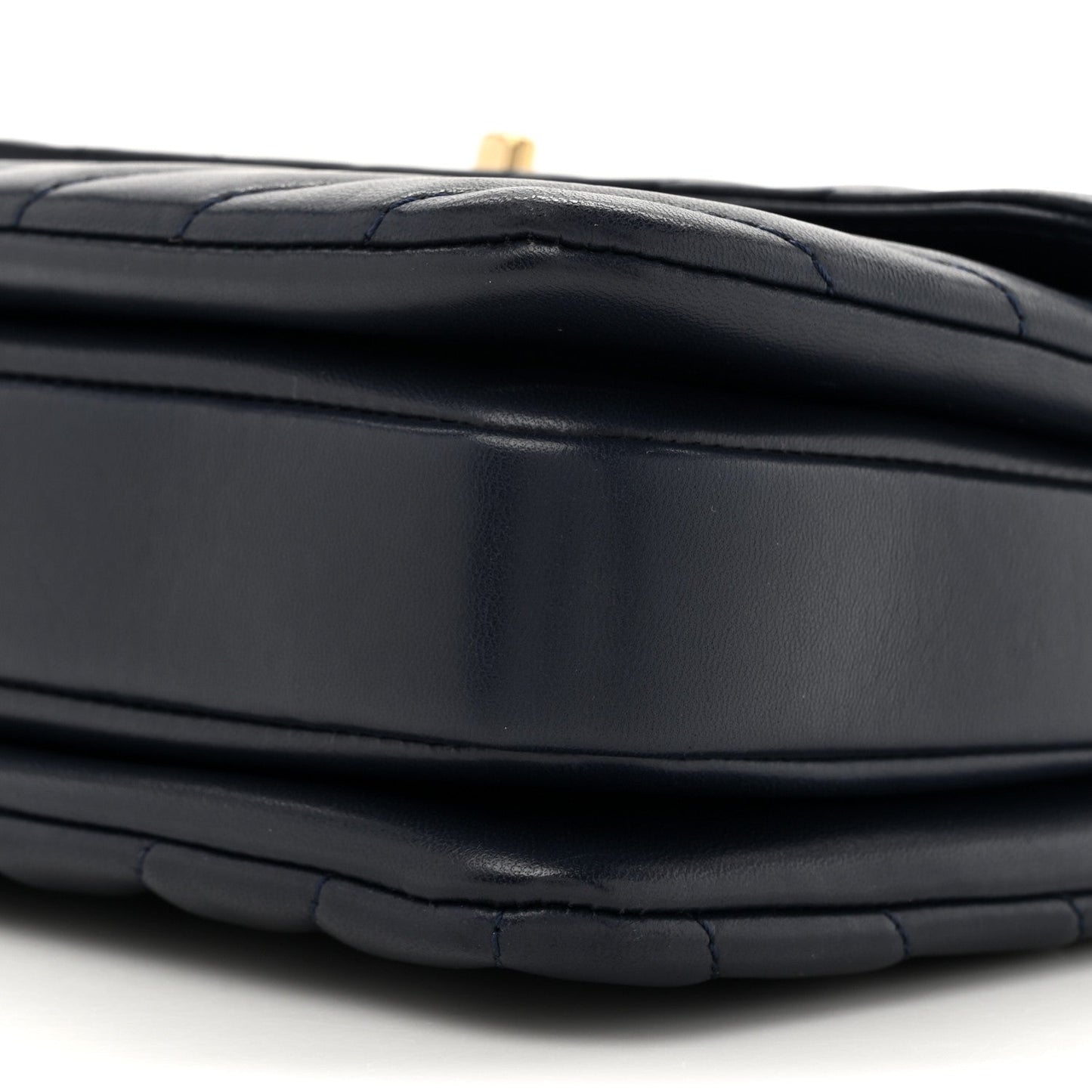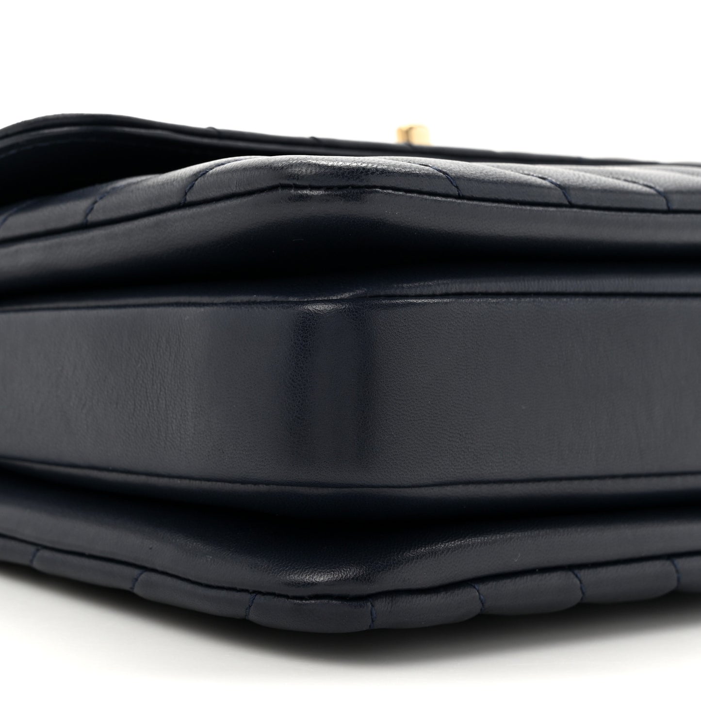 Lambskin Chevron Quilted Small Trendy CC Flap Dual Handle Bag Navy