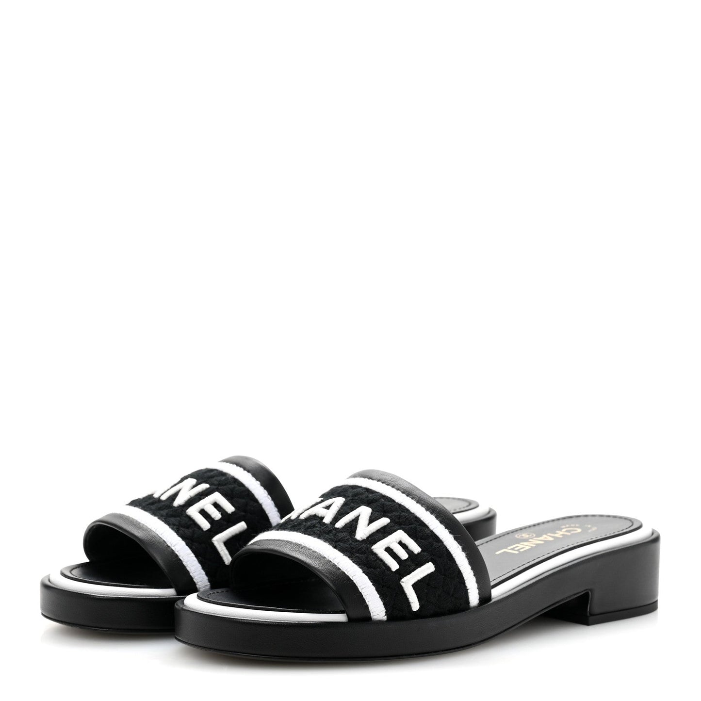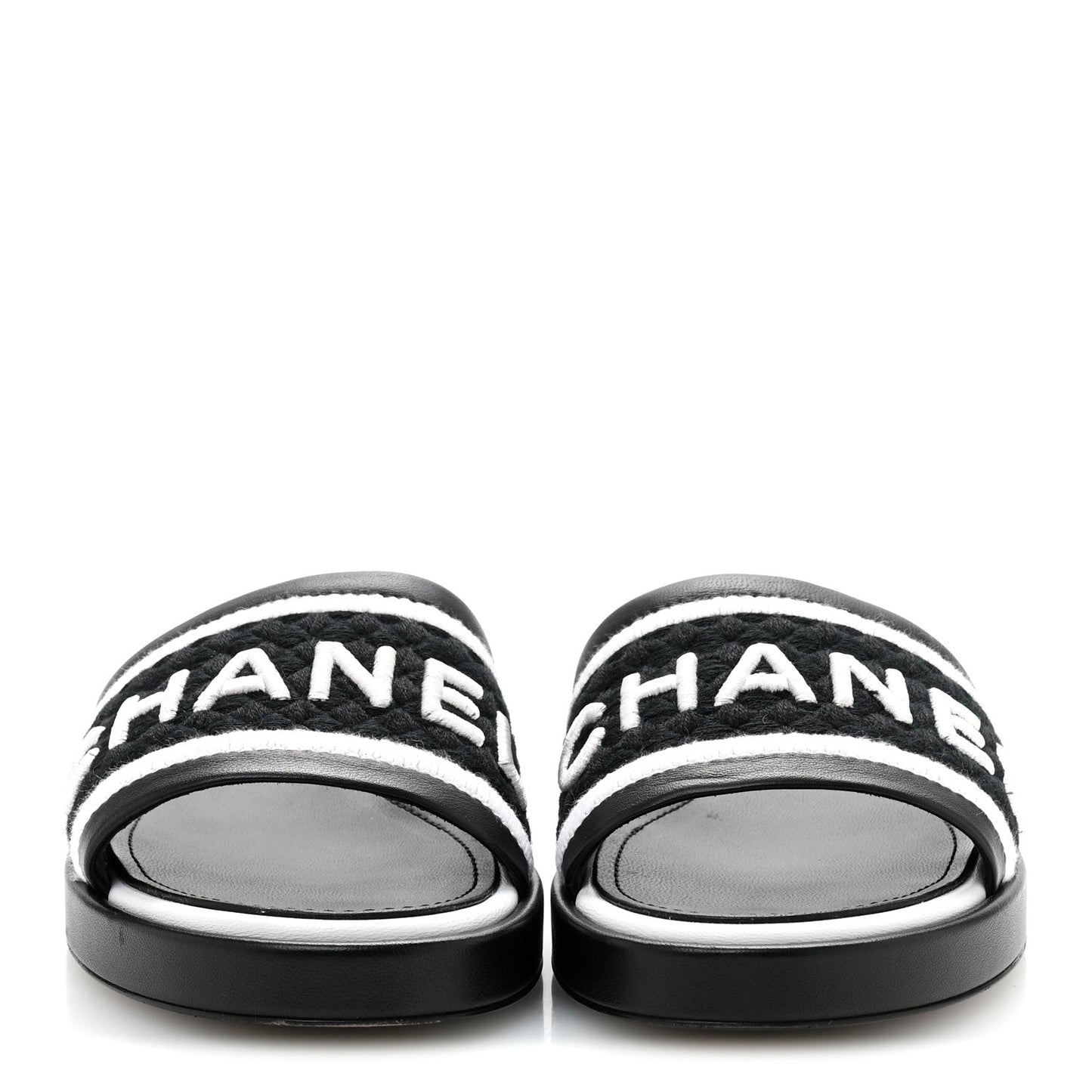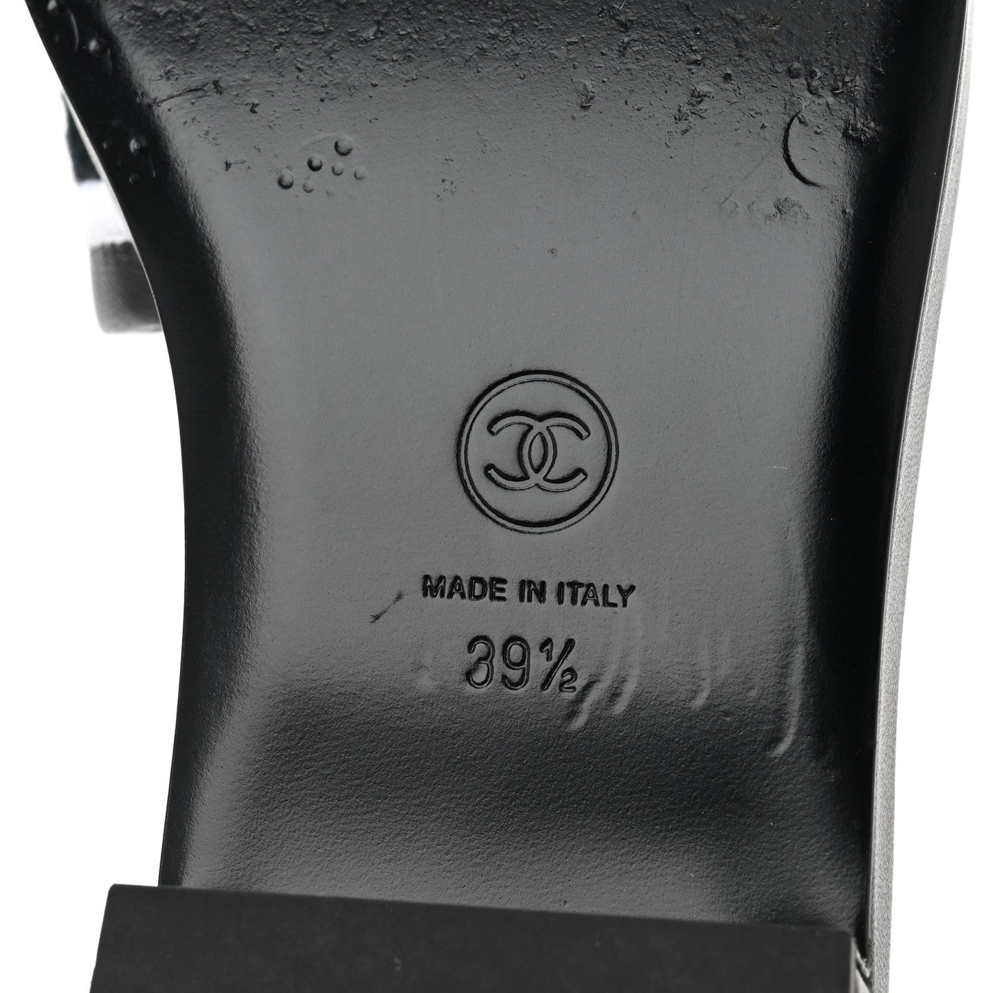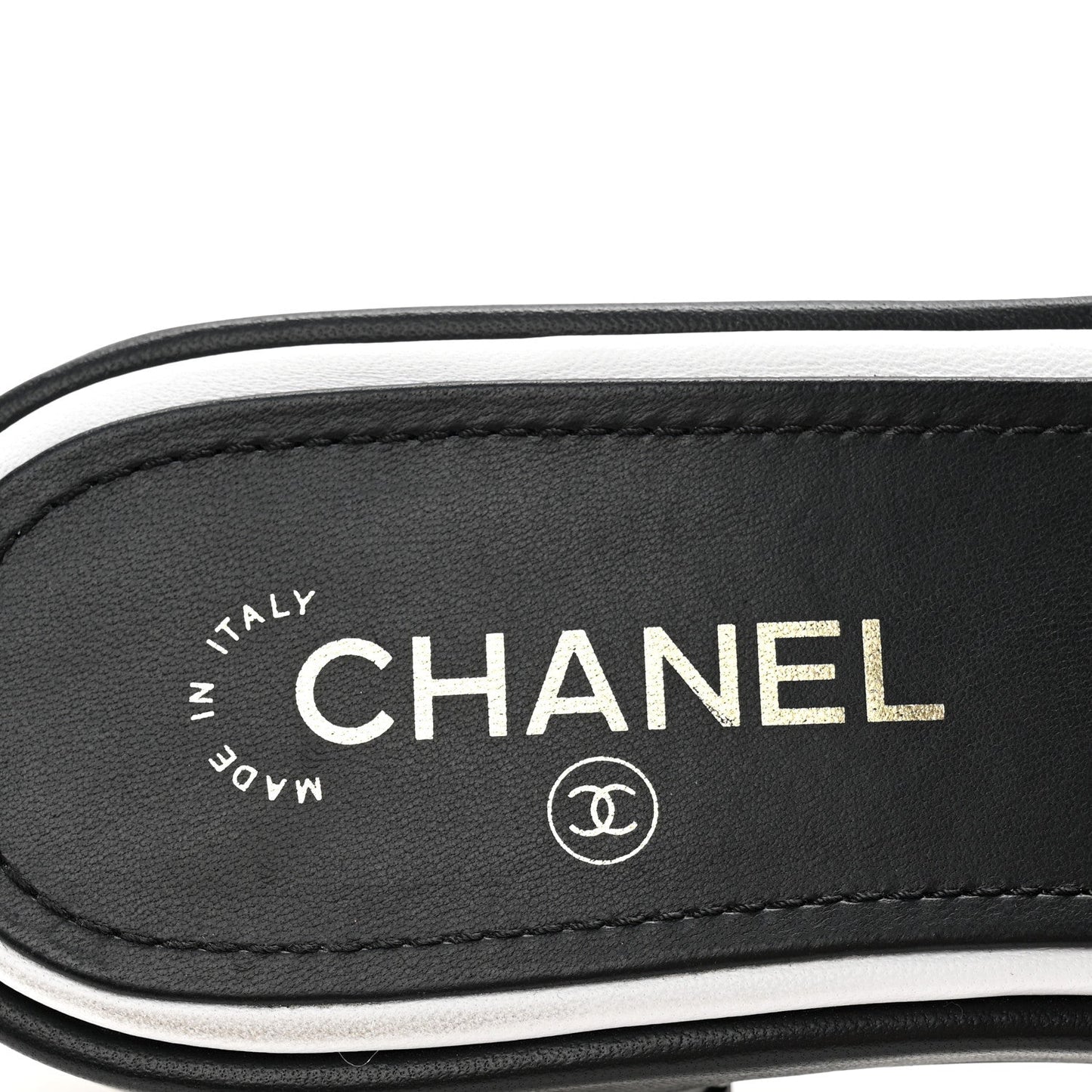 Chanel/ Accessories/ Shoes /Chanel Lambskin Embroidered CC Mule Sandal 39.5 Black White