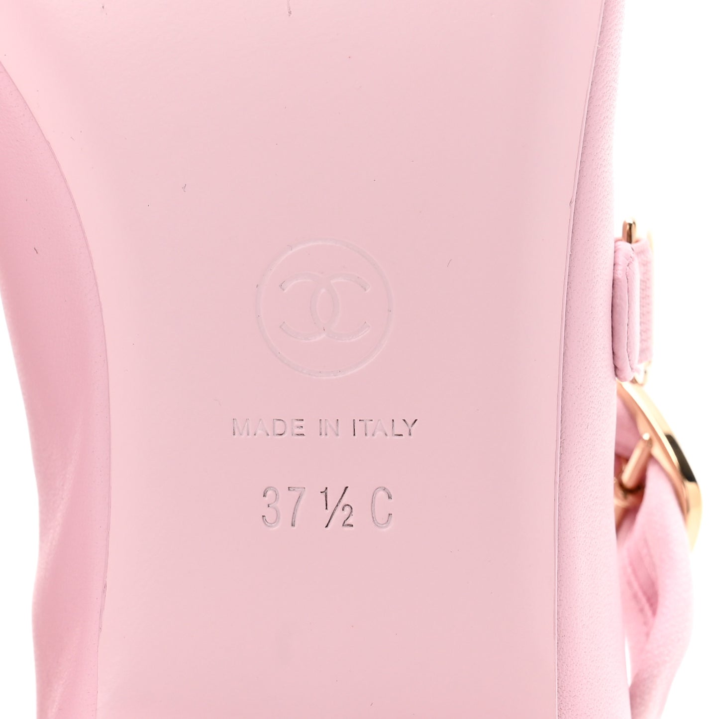 This is an authentic CHANEL Lambskin Mary Jane Flats size 37.5 in Pink. These flats are crafted of lambskin leather in pink. They feature a rounded toe with an embroidered Chanel CC logo, and a gold buckled strap.Follow this item for alerts. Chanel is a registered trademark of Chanel. FASHIONPHILE is not affiliated with Chanel.
