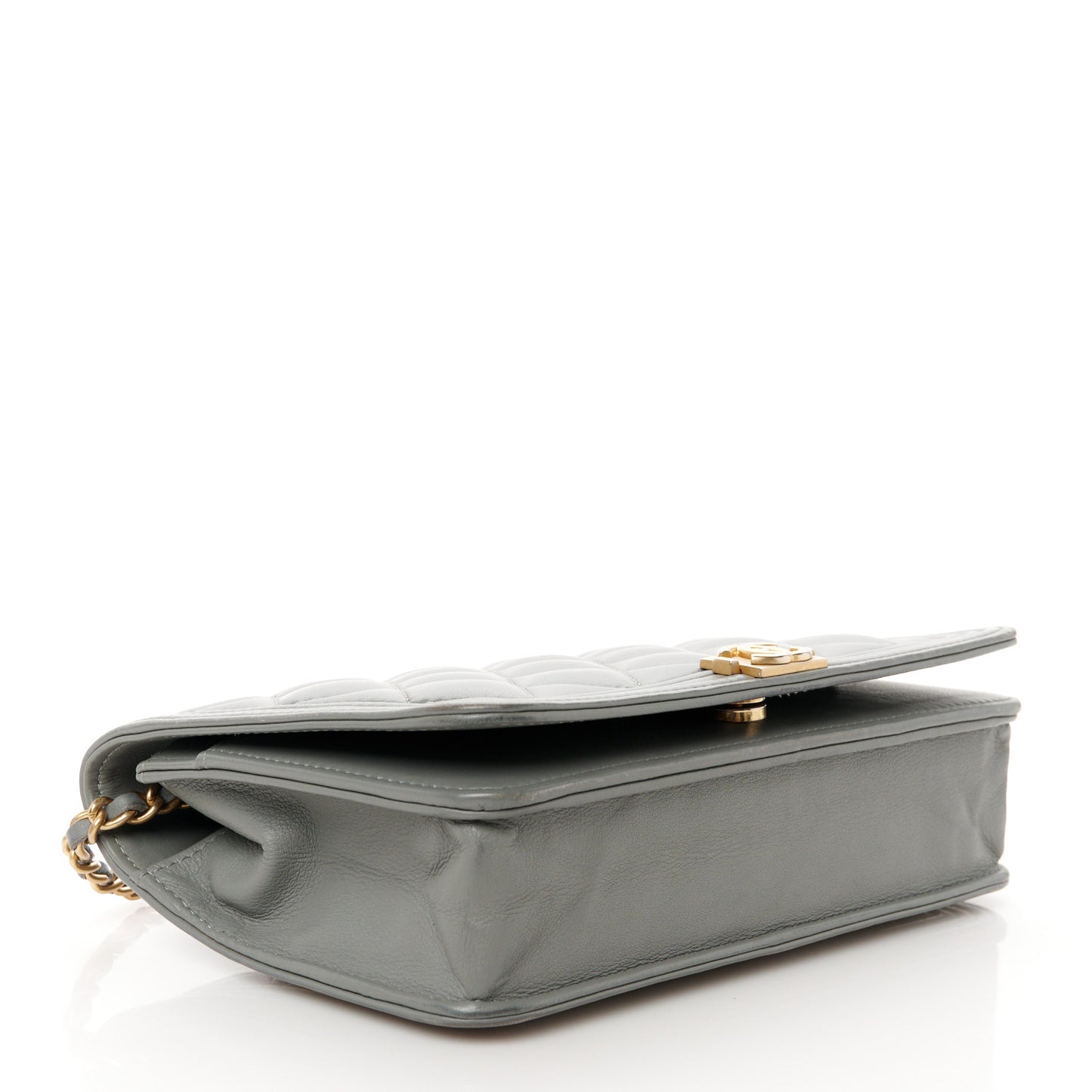 Lambskin Quilted Boy Wallet On Chain WOC Grey
