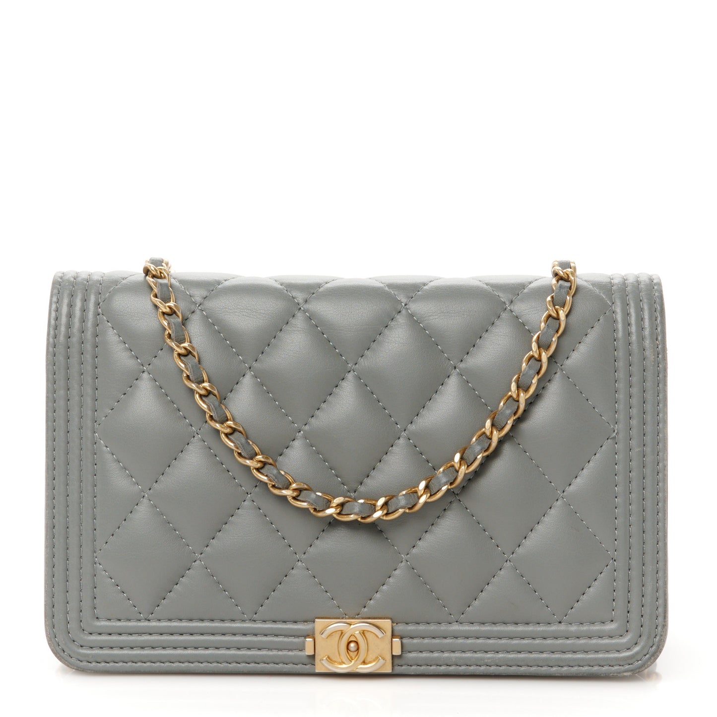 Chanel/ Bags/ Wallet Style /Chanel Lambskin Quilted Boy Wallet On Chain WOC Grey
