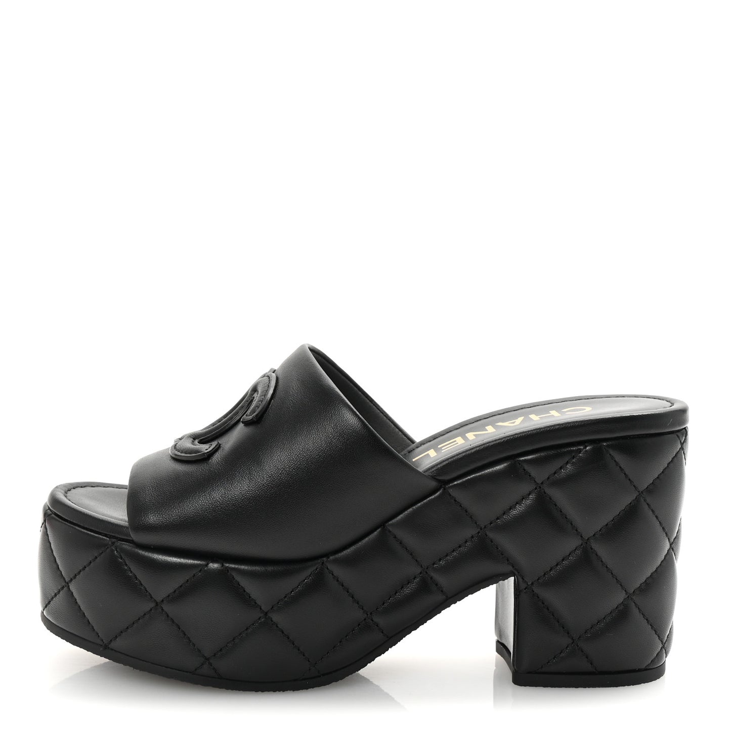 Chanel/ Accessories/ Shoes /Chanel Lambskin Quilted CC Platform Mules 36 Black