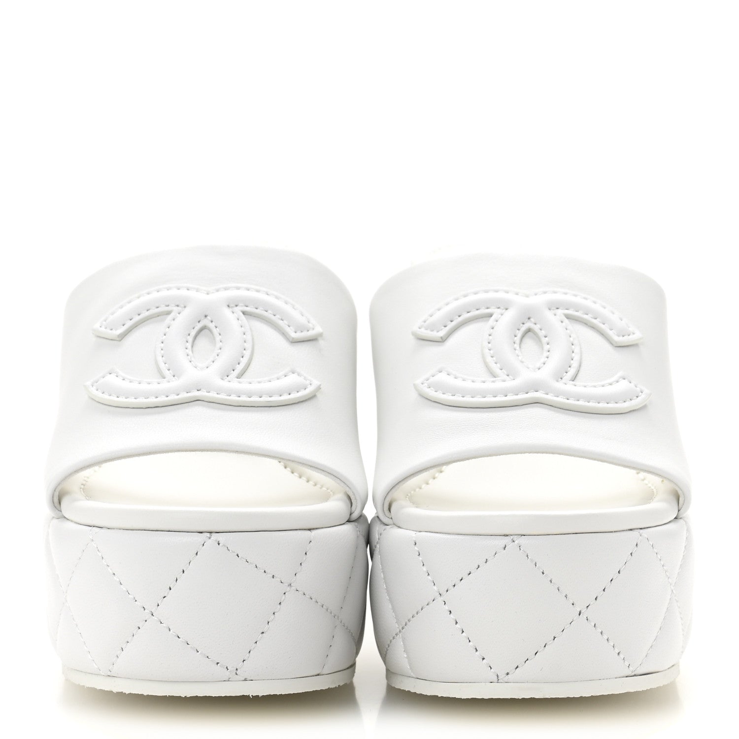 Chanel/ Accessories/ Shoes /Chanel Lambskin Quilted CC Platform Mules 38 White