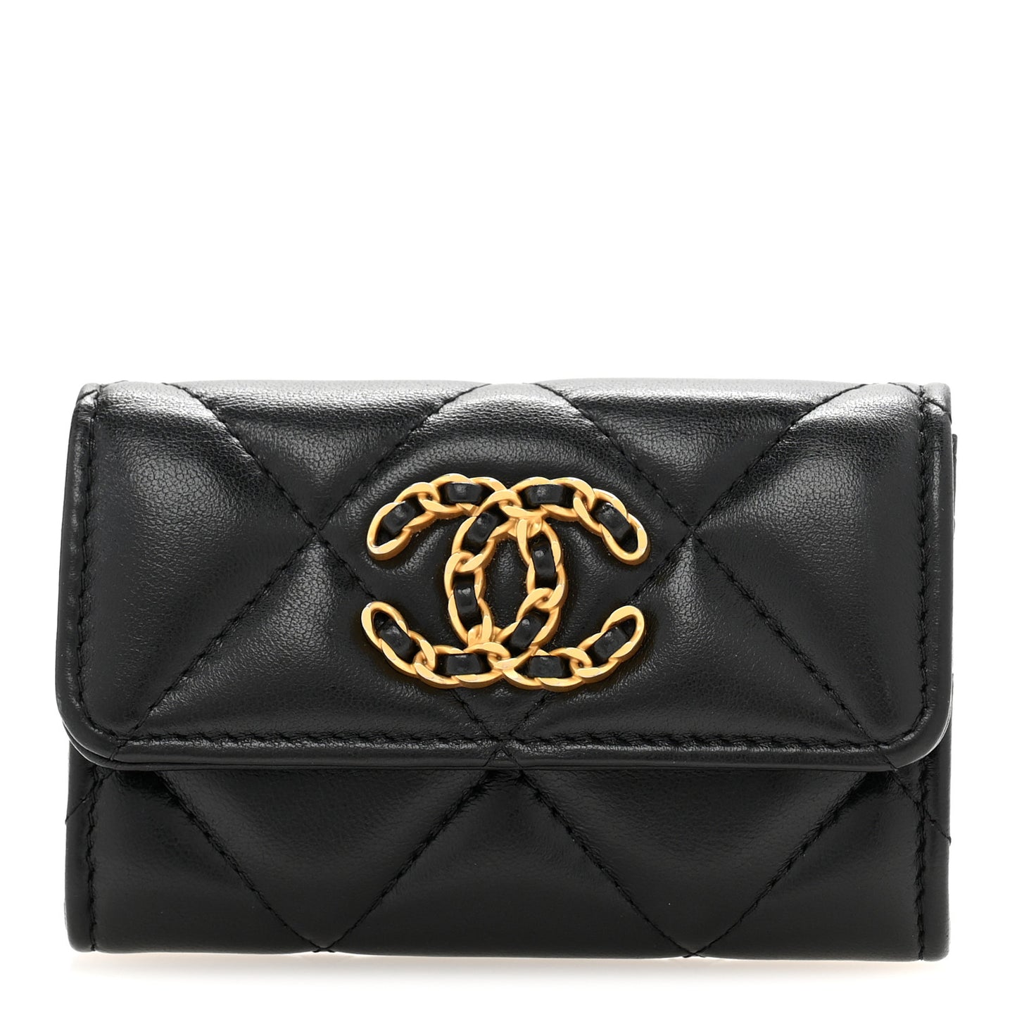 Lambskin Quilted Chanel 19 Flap Card Holder Black