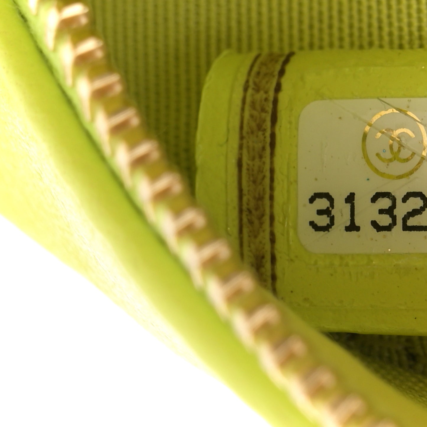 This is an authentic CHANEL Lambskin Quilted Chanel 19 Round Clutch With Chain in Yellow. This chic shoulder bag is crafted of yellow lambskin diamond-stitched leather. This round handbag features a leather threaded silver chain-link shoulder strap and a Chanel CC logo on the front. The zipper opens to a yellow fabric interior with a small patch pocket.Follow this item for alerts. Chanel is a registered trademark of Chanel. FASHIONPHILE is not affiliated with Chanel.