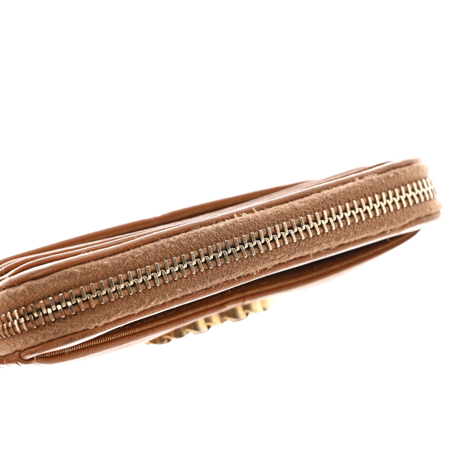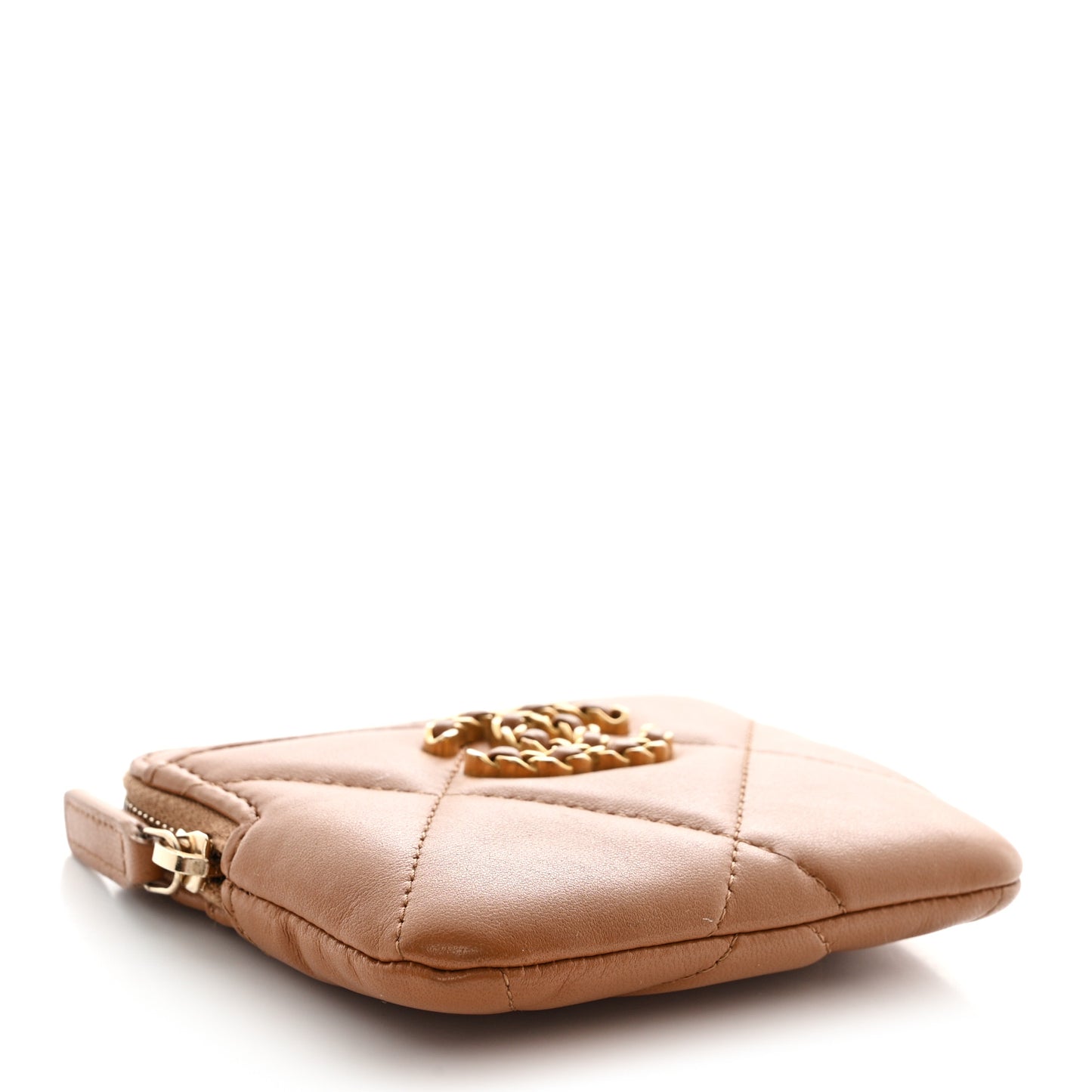 Lambskin Quilted Chanel 19 Zip Card Holder Wallet Brown