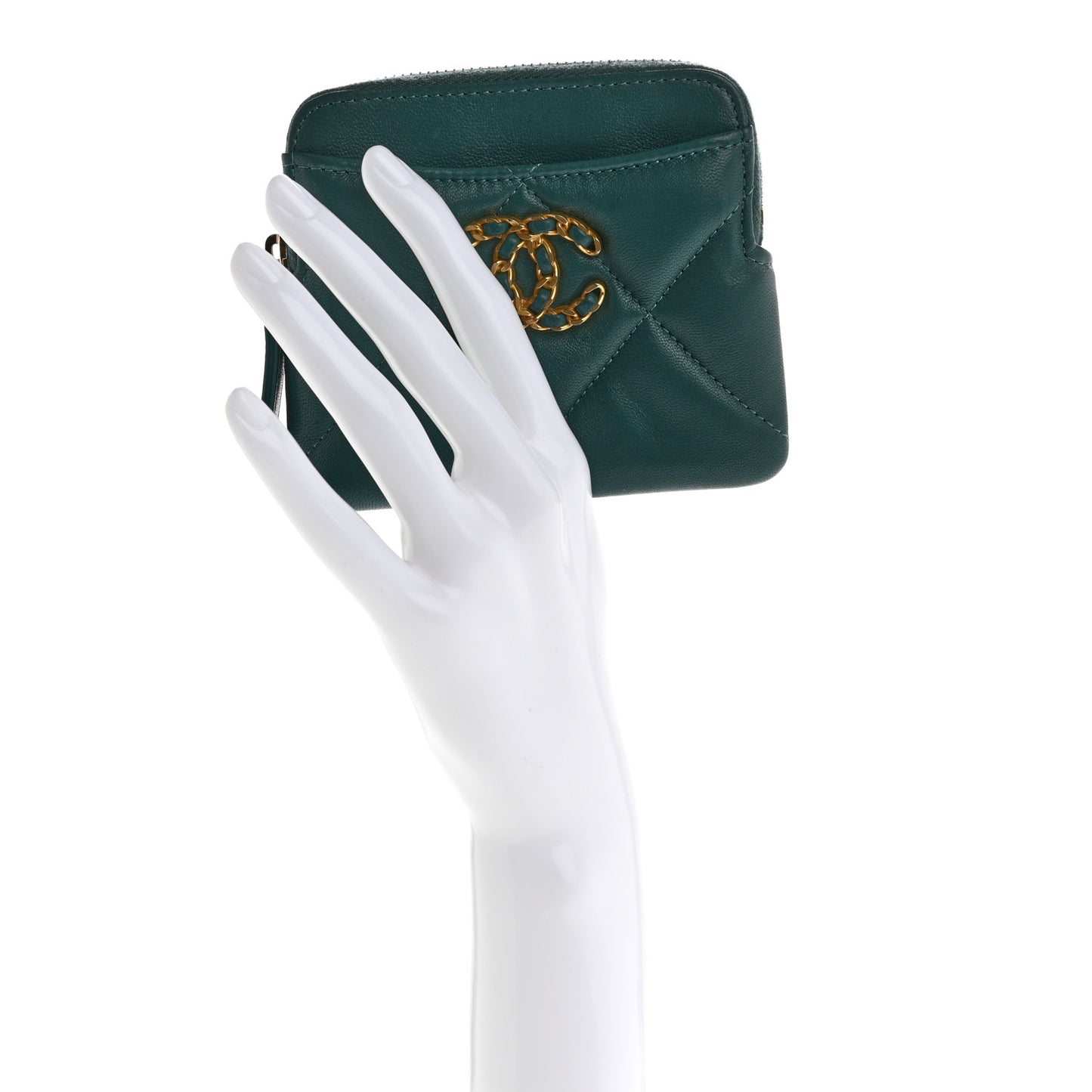 Chanel/ Accessories/ Wallets /Chanel Lambskin Quilted Chanel 19 Zip Card Holder Wallet Dark Green