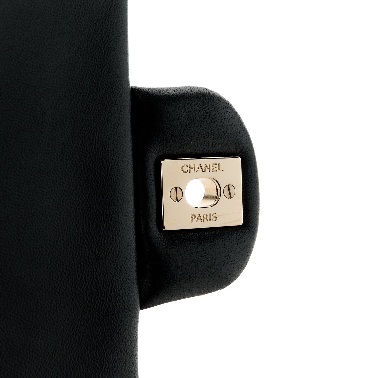 This is an authentic CHANEL Lambskin Quilted Flap Clutch in Black. This quilted clutch is crafted of lambskin leather in black. The clutch features a rear patch pocket, and a silver CC Chanel turn lock on the flap. This opens to a black leather interior with a zipper pocket.Follow this item for alerts. Chanel is a registered trademark of Chanel. FASHIONPHILE is not affiliated with Chanel.