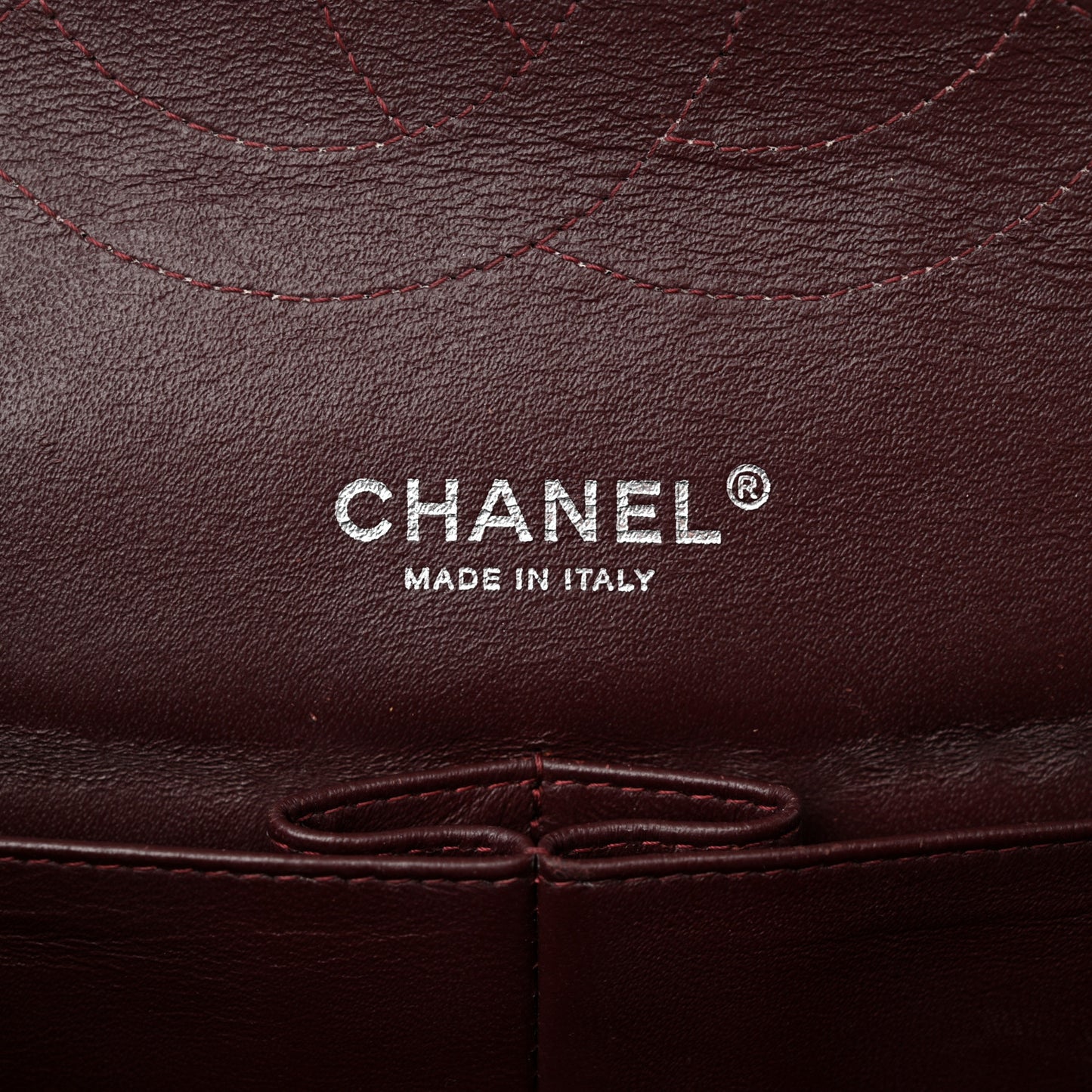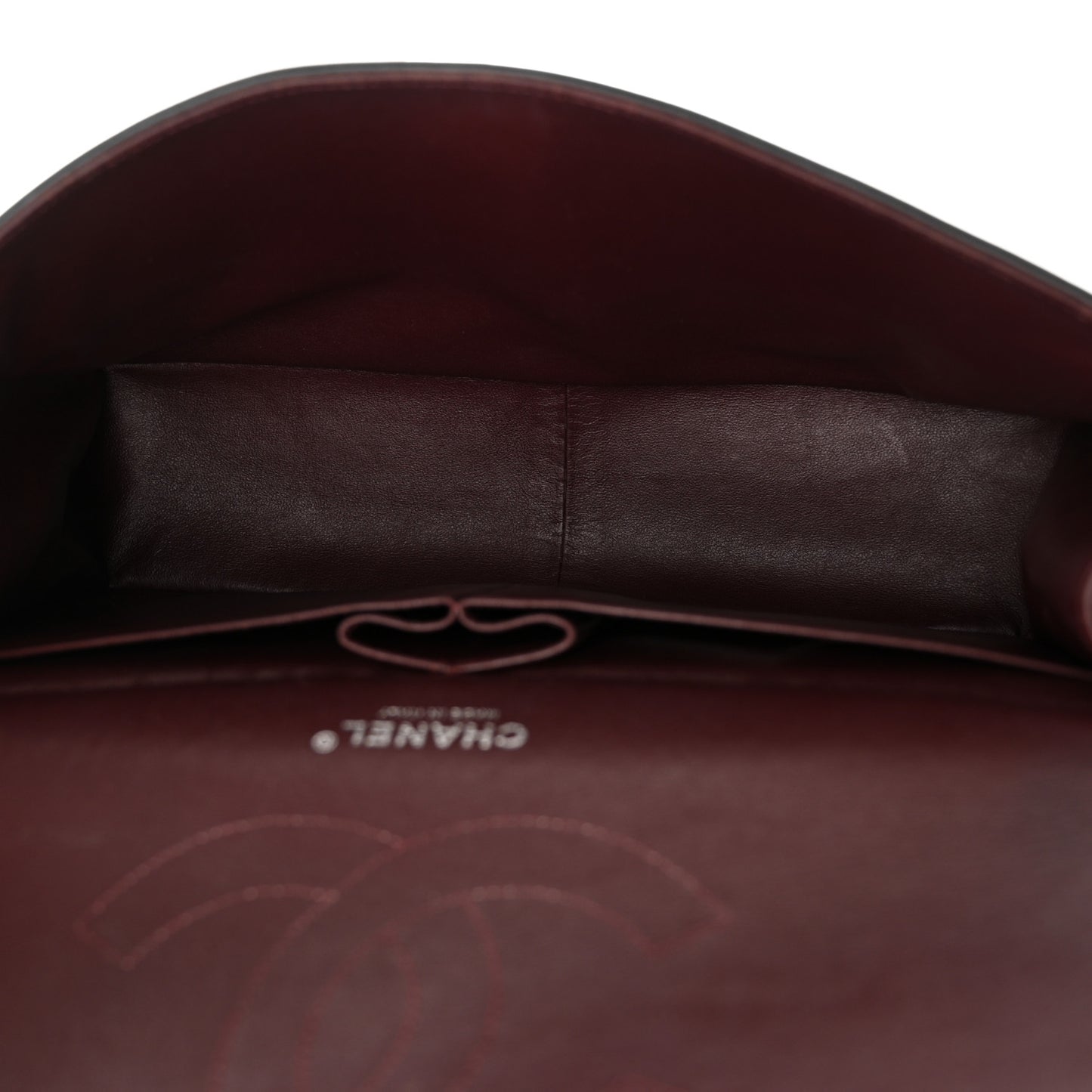 This is an authentic CHANEL Lambskin Quilted Jumbo Double Flap in Black. This bag is crafted of soft and supple diamond-quilted lambskin leather in black. It features a leather-threaded polished silver chain-link shoulder strap, a rear patch pocket, and a matching silver classic CC turn-lock on the crossover flap. This opens the bag to reveal an inner flap and a burgundy leather interior with two patch pockets.Follow this item for alerts. Chanel is a registered trademark of Chanel. FASHIONPHILE is not affiliated with Chanel.