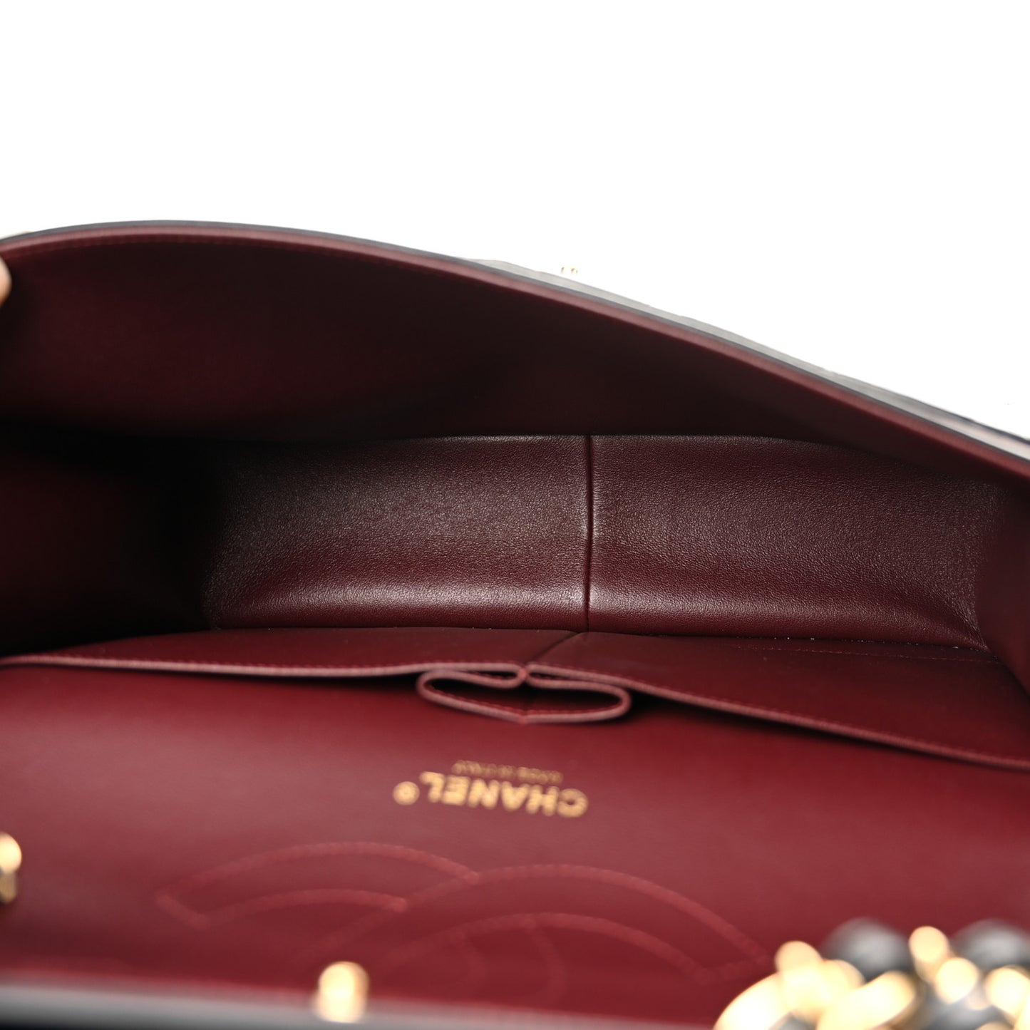 This is an authentic CHANEL Lambskin Quilted Jumbo Double Flap in Black. This bag is crafted of soft and supple diamond-quilted lambskin leather in black. It features a leather-threaded polished gold chain-link shoulder strap, a rear patch pocket, and a matching gold classic CC turn-lock on the crossover flap. This opens the bag to reveal an inner flap and a burgundy leather interior with two patch pockets.Follow this item for alerts. Chanel is a registered trademark of Chanel. FASHIONPHILE is not affiliated with Chanel.
