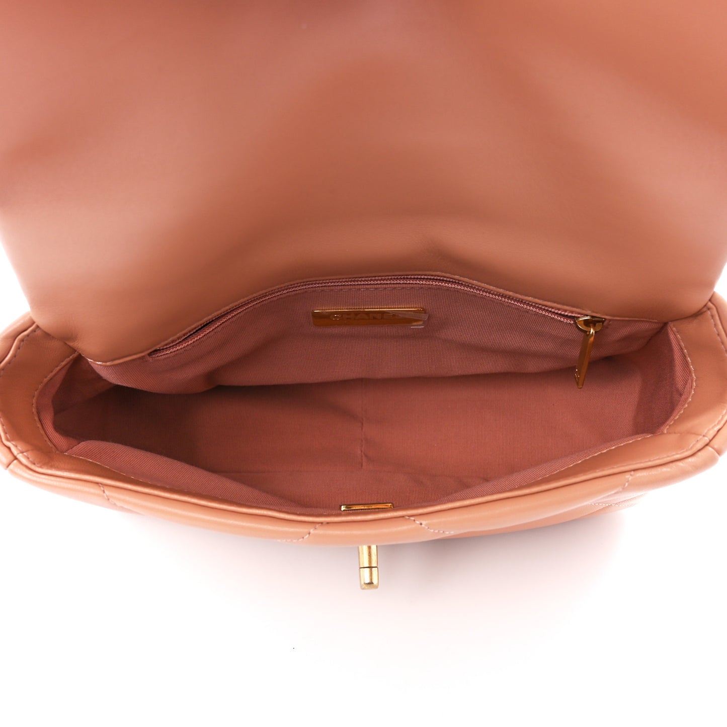 Lambskin Quilted Medium Chanel 19 Flap Beige