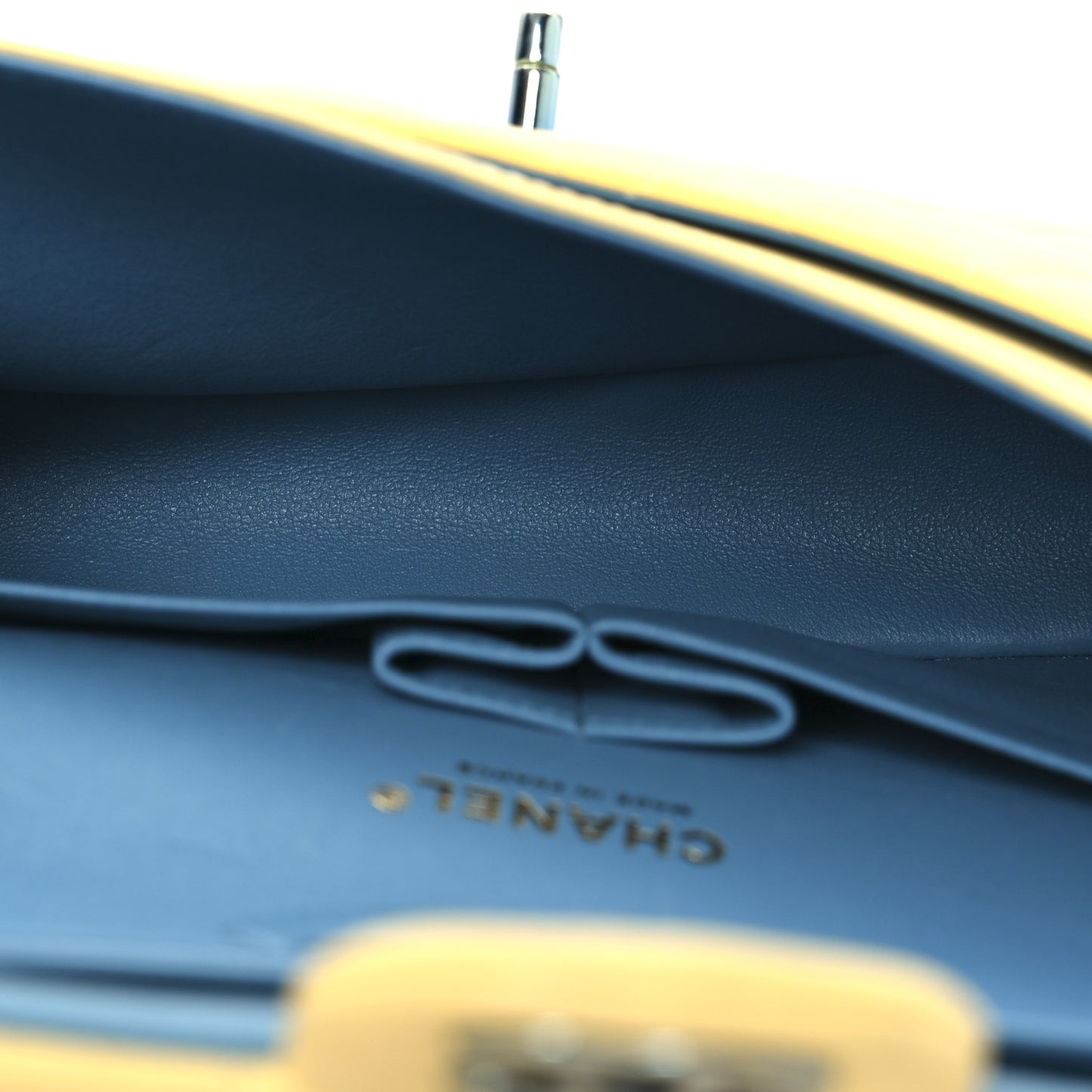 Chanel/ Bags/ Shoulder Bags /Chanel Lambskin Quilted Medium Double Flap Yellow Blue