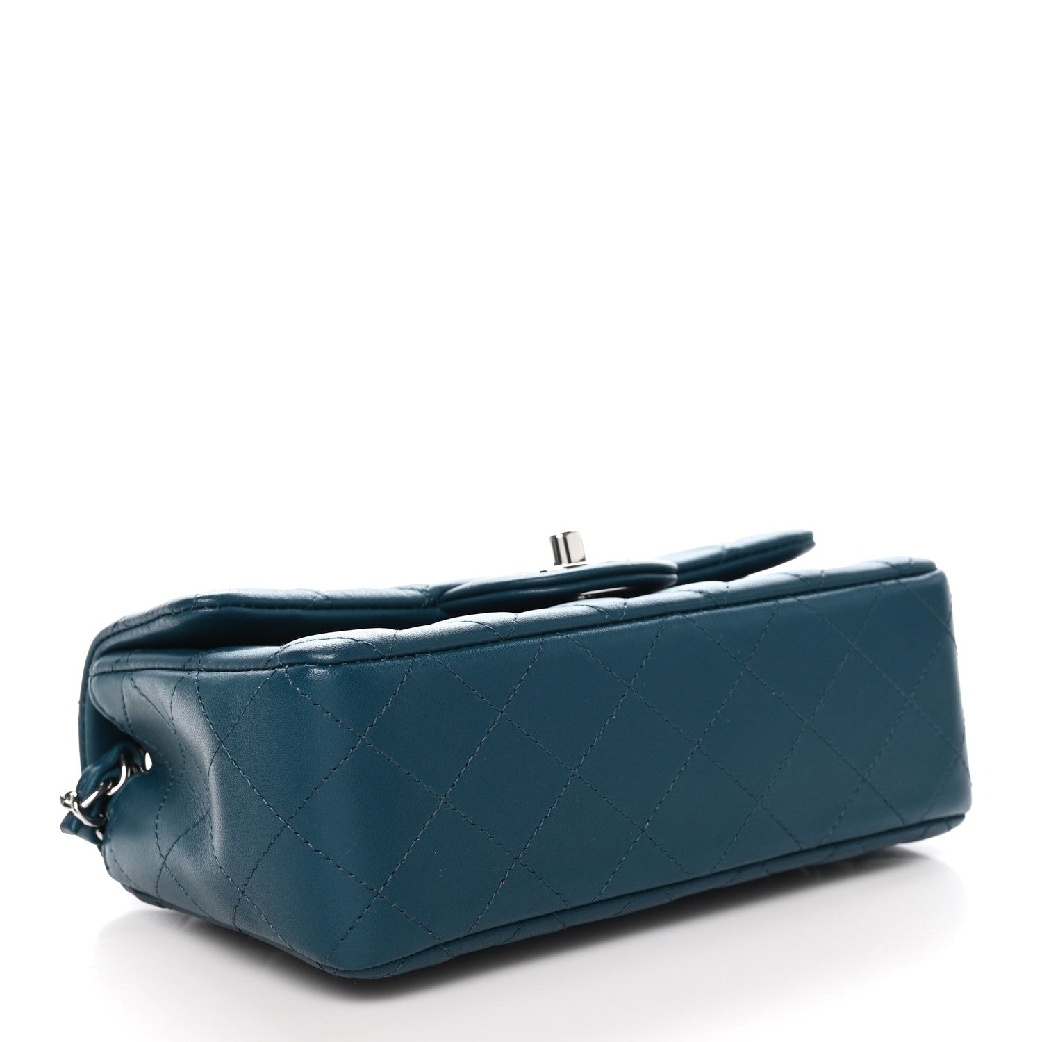 Lambskin Quilted Mini Rectangular Flap Dark Blue