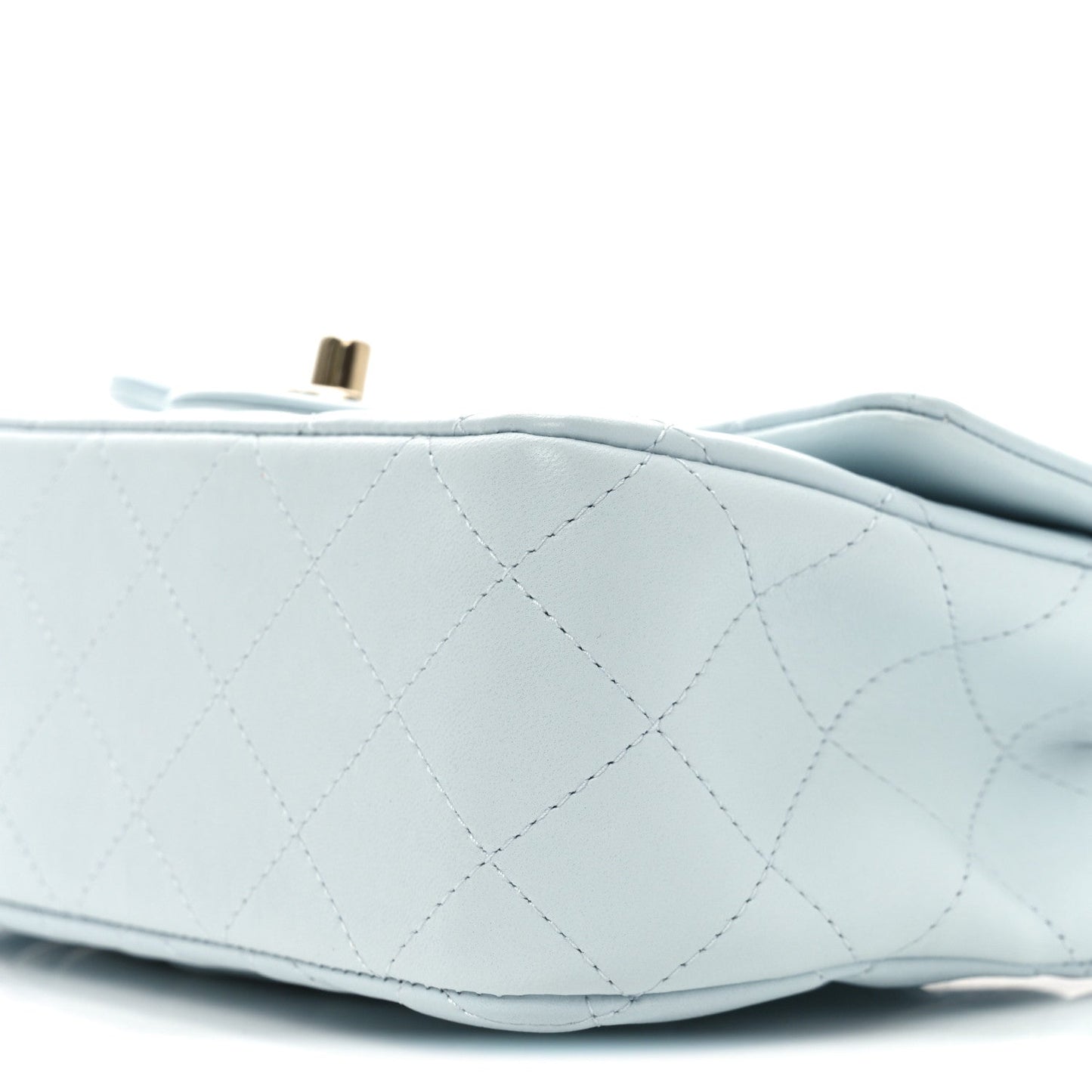 Lambskin Quilted Mini Rectangular Flap Light Blue