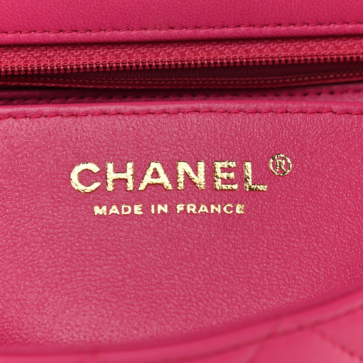 This is an authentic CHANEL Lambskin Quilted Mini Rectangular Flap in Pink. This chic classic mini flap is crafted of soft diamond-quilted lambskin leather in bright pink. The shoulder bag features a gold chain-link leather threaded shoulder strap, a rear patch pocket, and a gold Chanel CC turn-lock on the front flap. This opens to a matte pink leather interior with pockets.Follow this item for alerts. Chanel is a registered trademark of Chanel. FASHIONPHILE is not affiliated with Chanel.