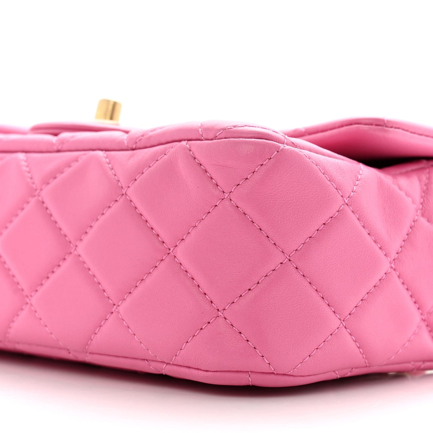 Lambskin Quilted Mini Rectangular Pearl Crush Flap Pink