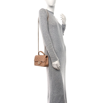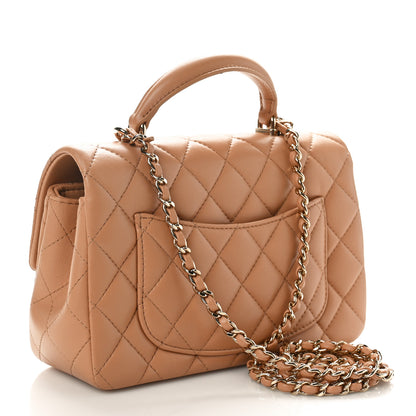 Lambskin Quilted Mini Top Handle Rectangular Flap Beige