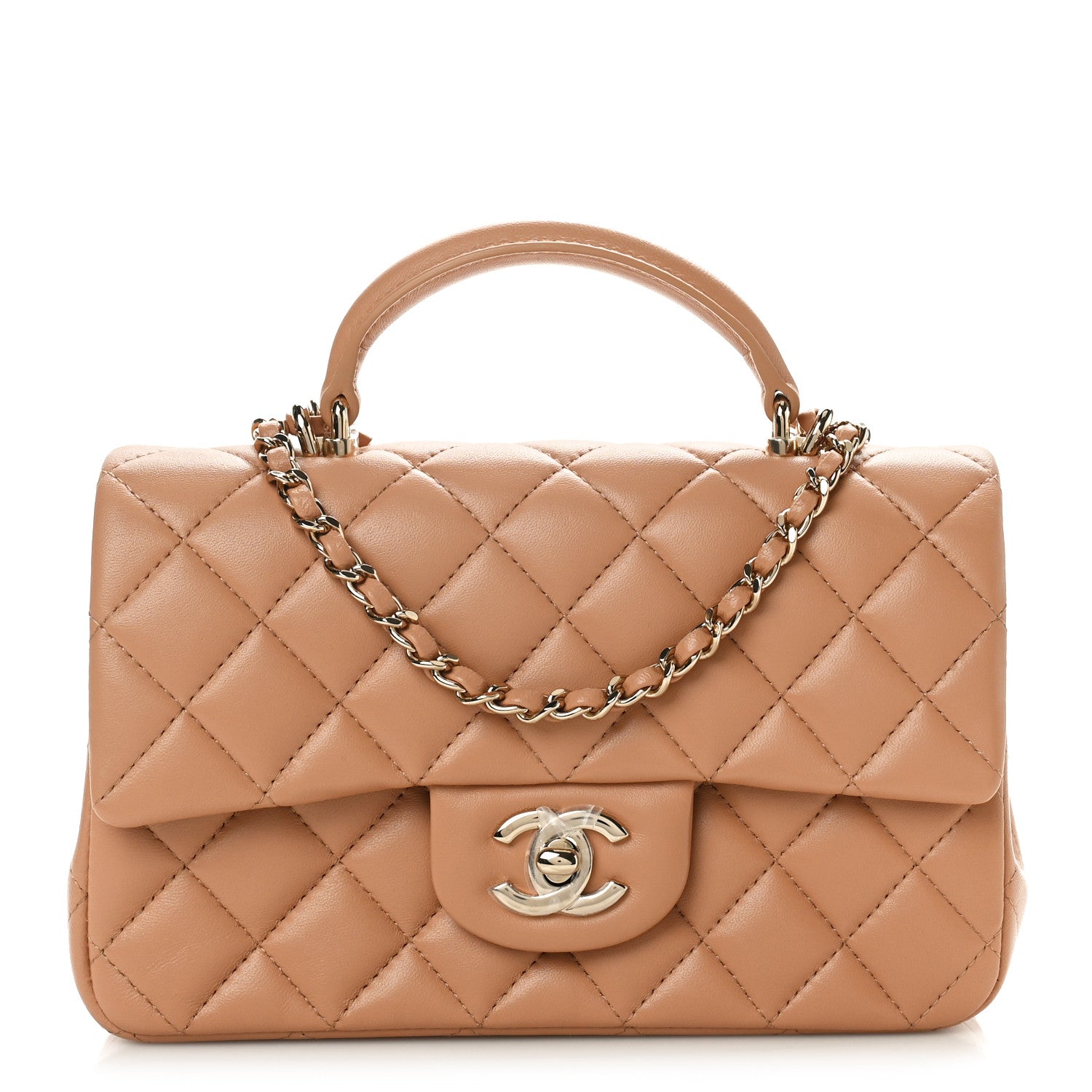 Chanel/ Bags/ Shoulder Bags /Chanel Lambskin Quilted Mini Top Handle Rectangular Flap Beige