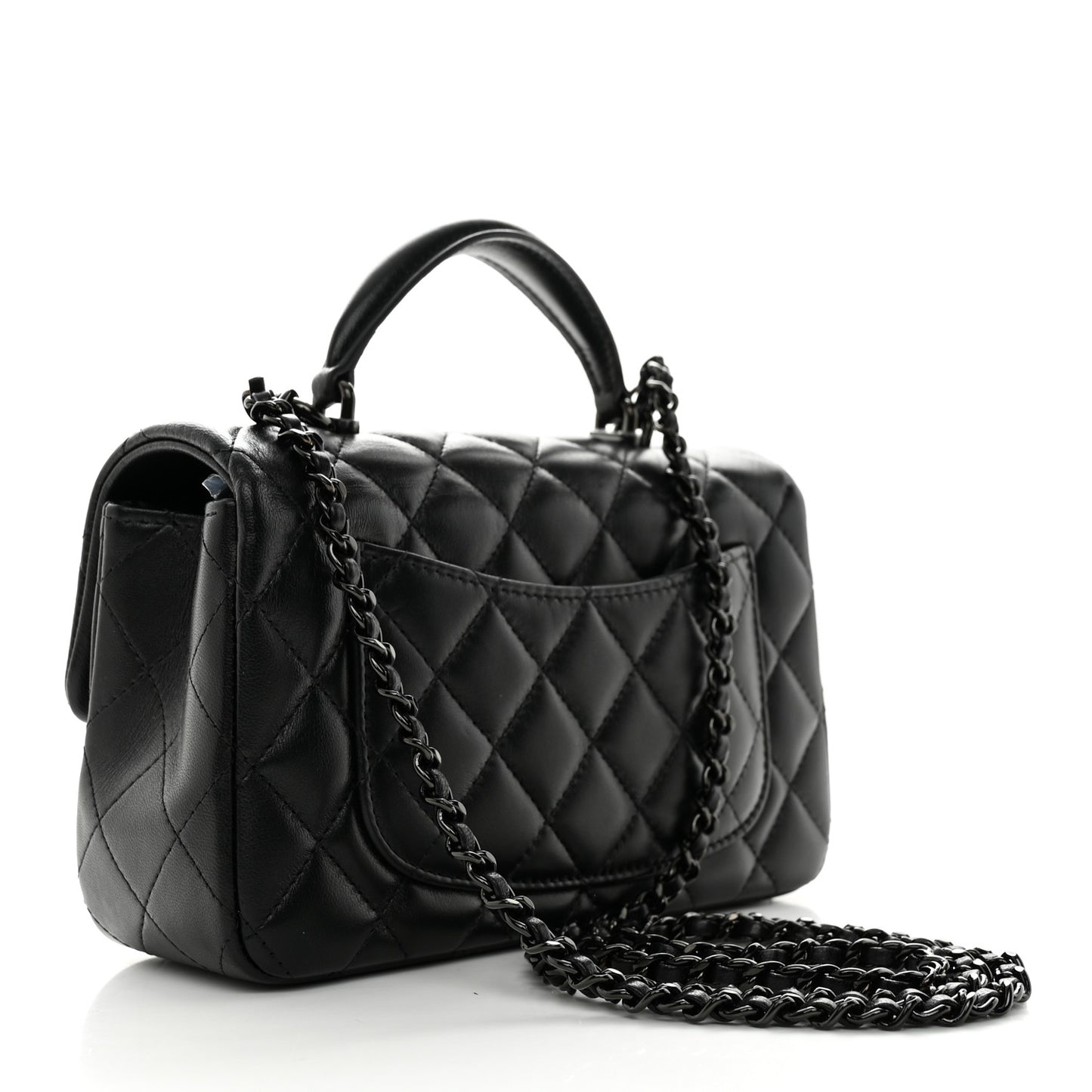 Chanel/ Bags/ Shoulder Bags /Chanel Lambskin Quilted Mini Top Handle Rectangular Flap So Black