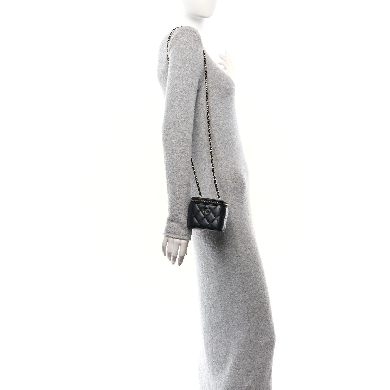 Lambskin Quilted Mini Vanity Case With Chain Black