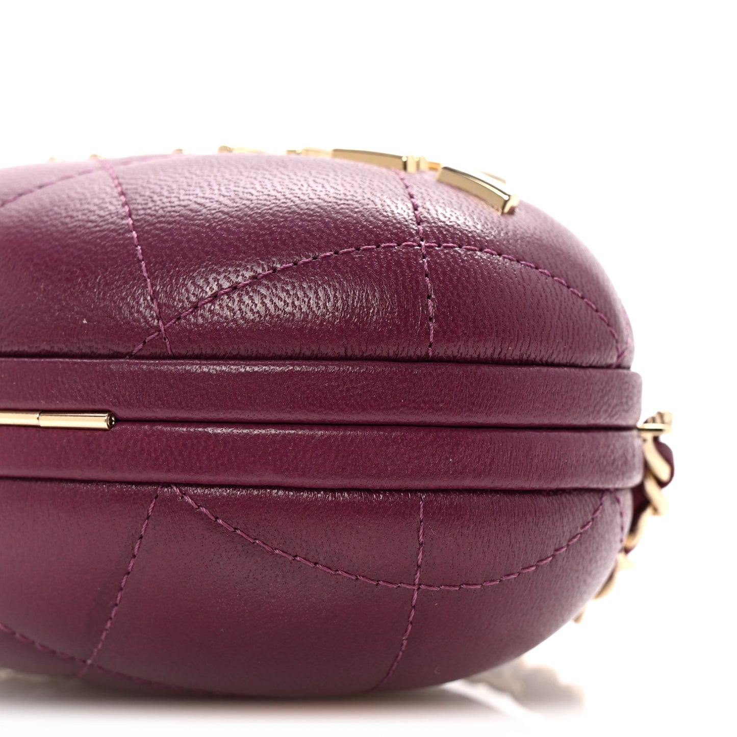 Lambskin Quilted Oval Minaudiere Chain Clutch Purple