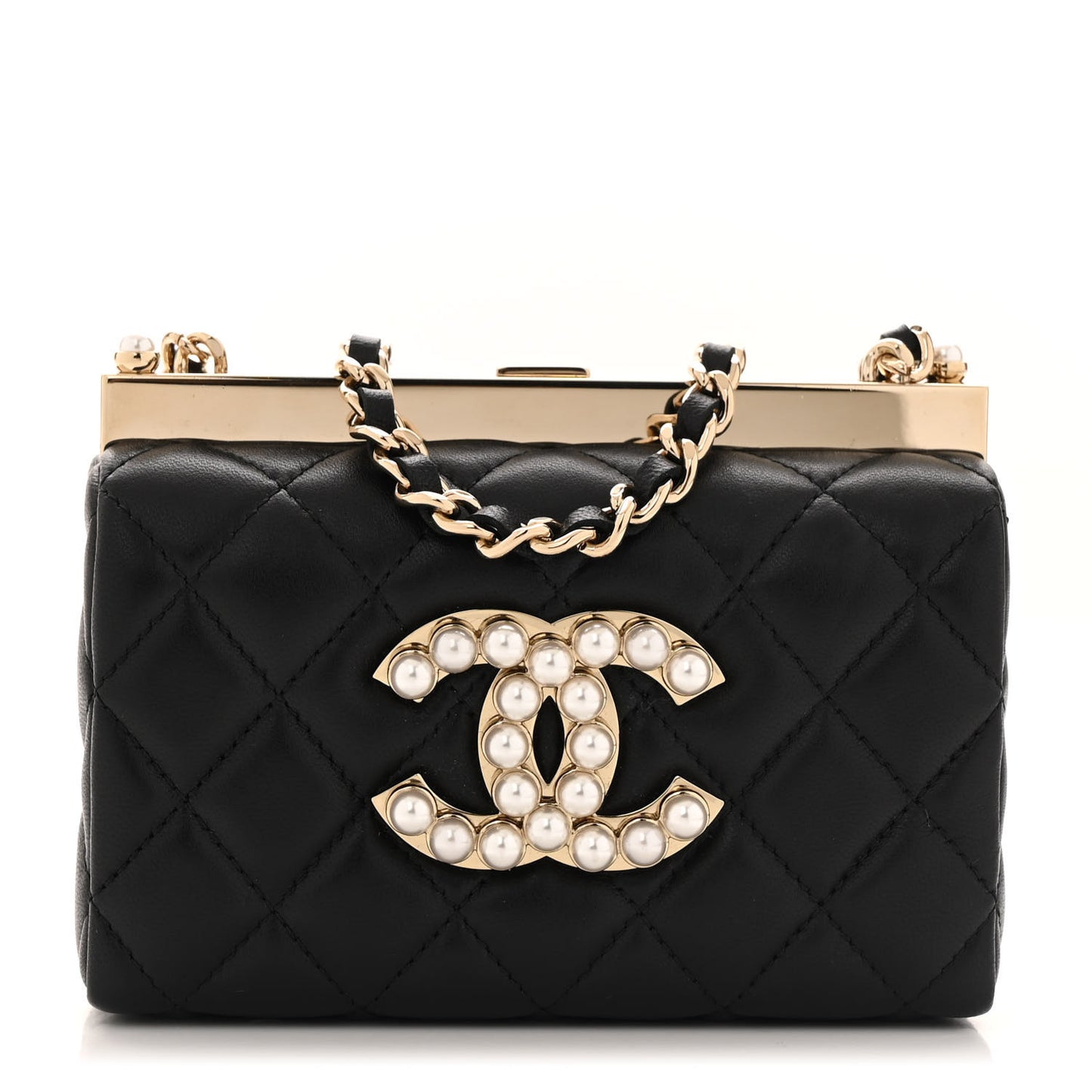 Chanel/ Bags/ Shoulder Bags /Chanel Lambskin Quilted Pearl CC Vanity Case Black