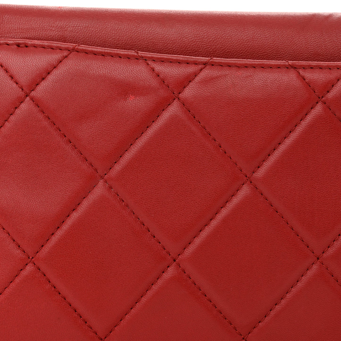 Chanel/ Bags/ Shoulder Bags /Chanel Lambskin Quilted Retro Label Clutch Red
