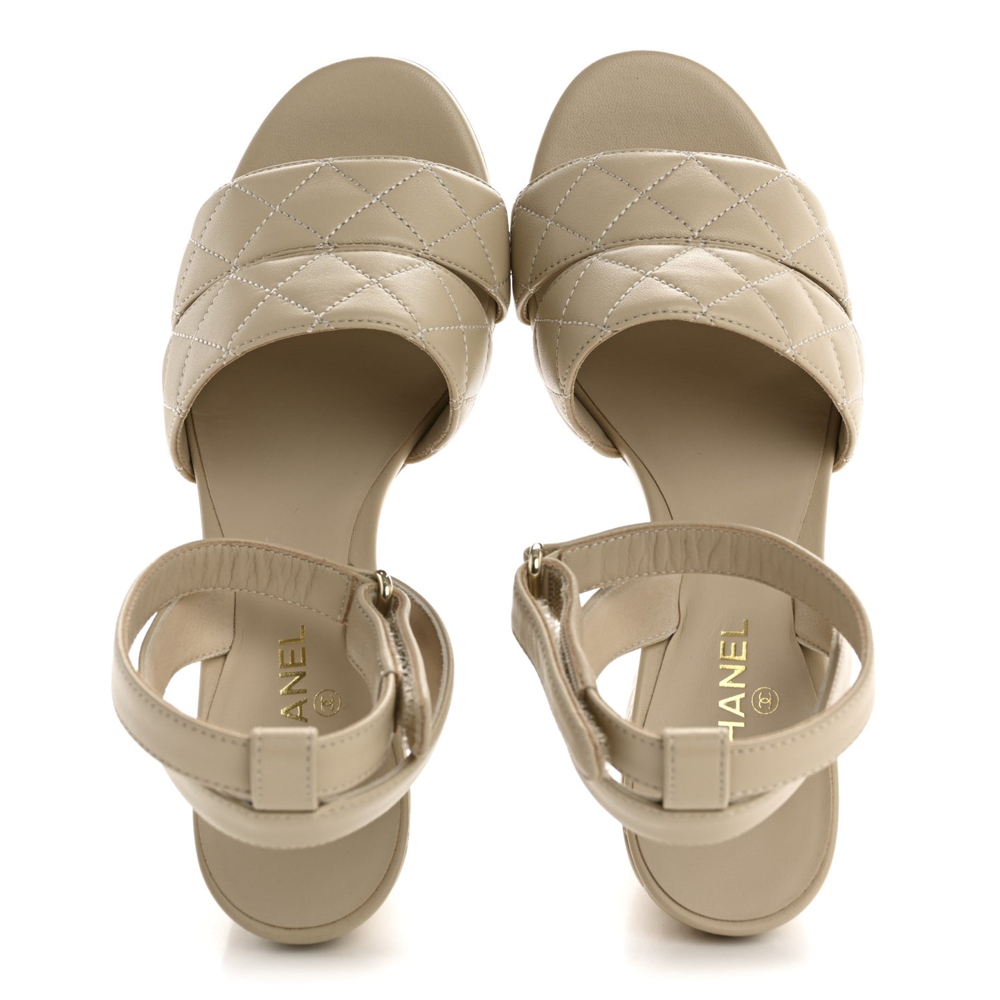 Chanel/ Accessories/ Shoes /Chanel Lambskin Quilted Sandals 37 Beige