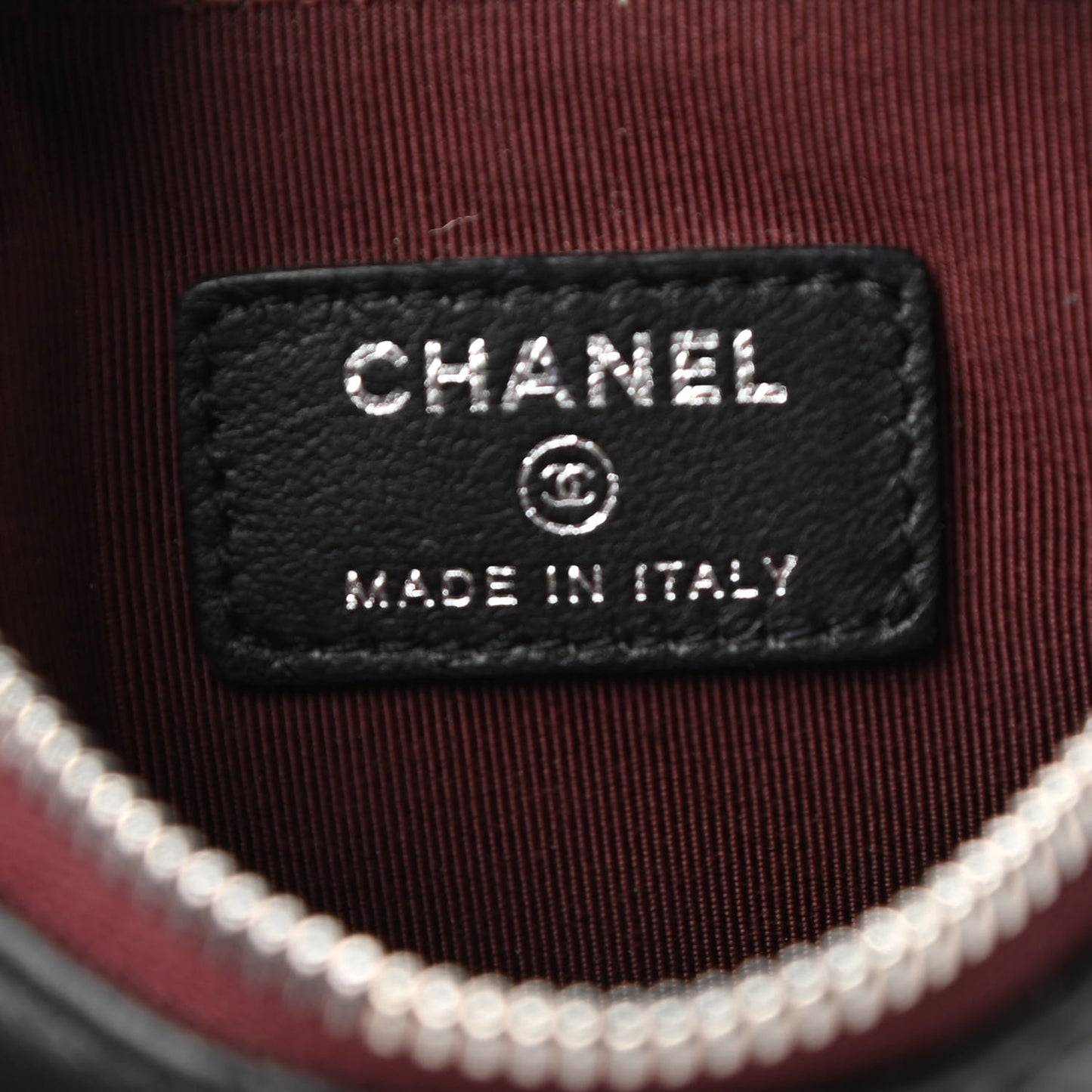 This is an authentic CHANEL Lambskin Quilted Small Cosmetic Case in Black. This chic clutch is crafted of diamond quilted lambskin leather in black with a small Chanel CC logo in silver. The top zipper opens to a burgundy quilted nylon interior.Follow this item for alerts. Chanel is a registered trademark of Chanel. FASHIONPHILE is not affiliated with Chanel.