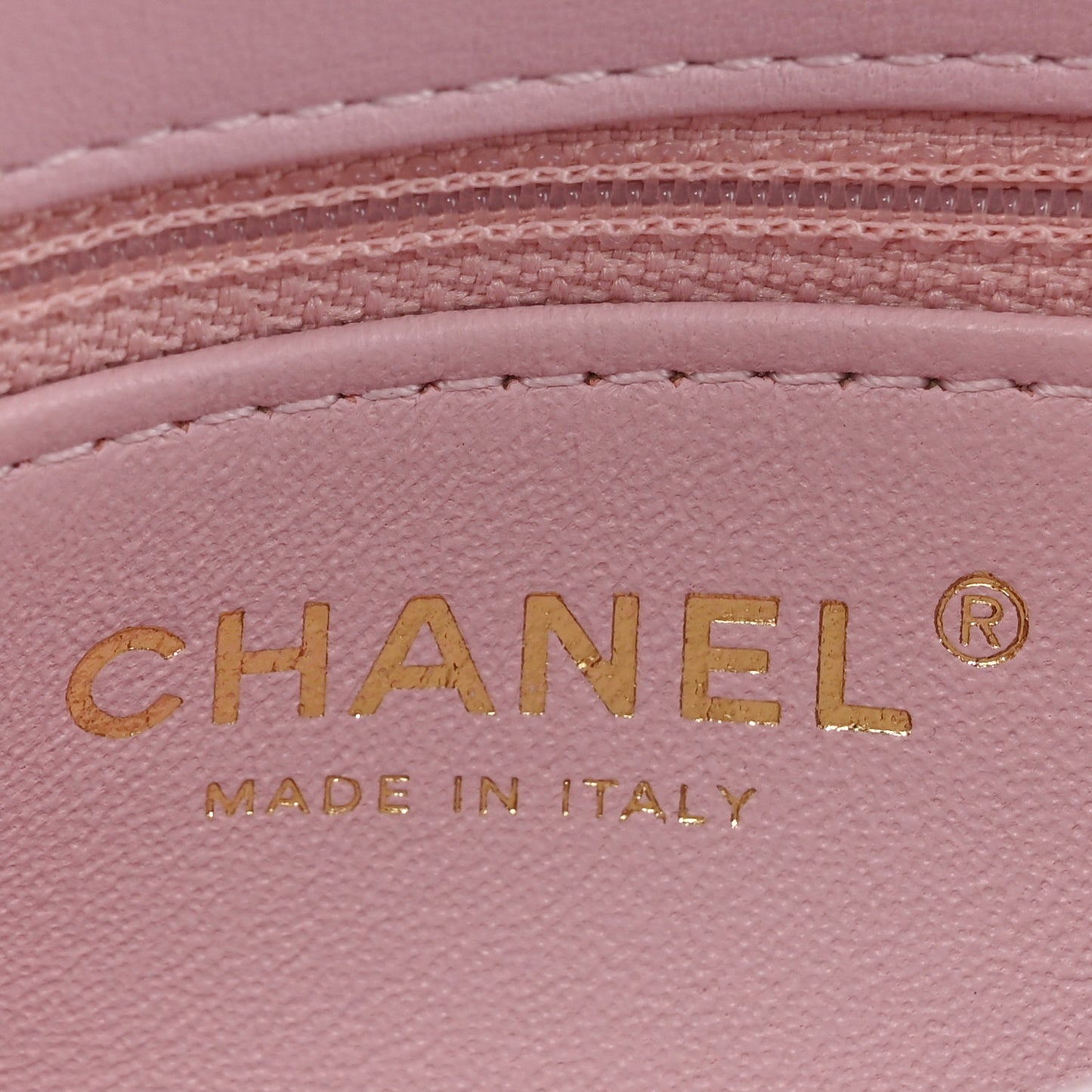 This is an authentic CHANEL Lambskin Quilted Small Chain CC Flap Dual Handle Bag in Light Pink. This stylish handbag is crafted of diamond-quilted lambskin leather in pink. The bag features a reinforced leather top handle anchored to a gold bar with a Chanel logo, an optional leather-threaded gold chain-link shoulder strap, and a rear patch pocket. The crossover flap opens with a classic CC turn-lock to a partitioned burgundy leather interior with zipper and patch pockets.Follow this item for alerts. Chanel is a registered trademark of Chanel. FASHIONPHILE is not affiliated with Chanel.