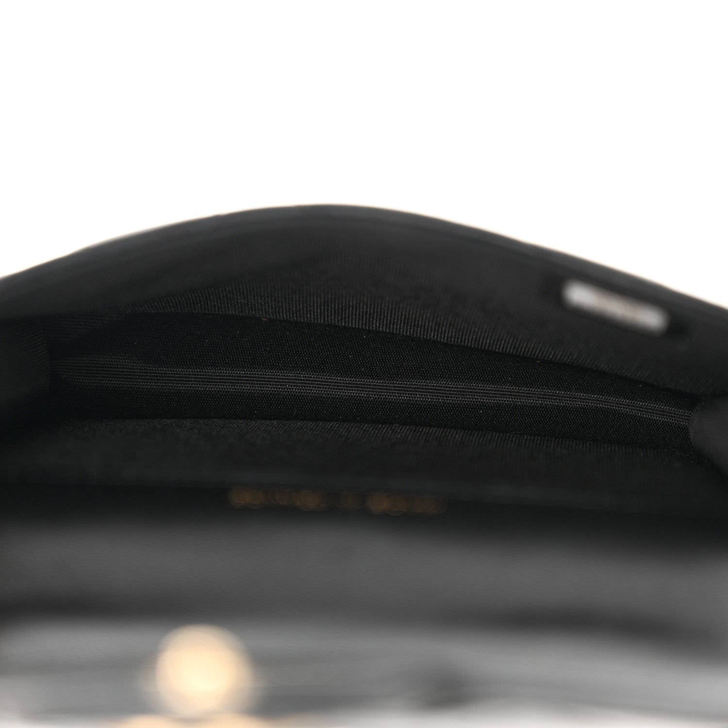 Lambskin Quilted Top Handle Flap Coin Purse With Chain Black