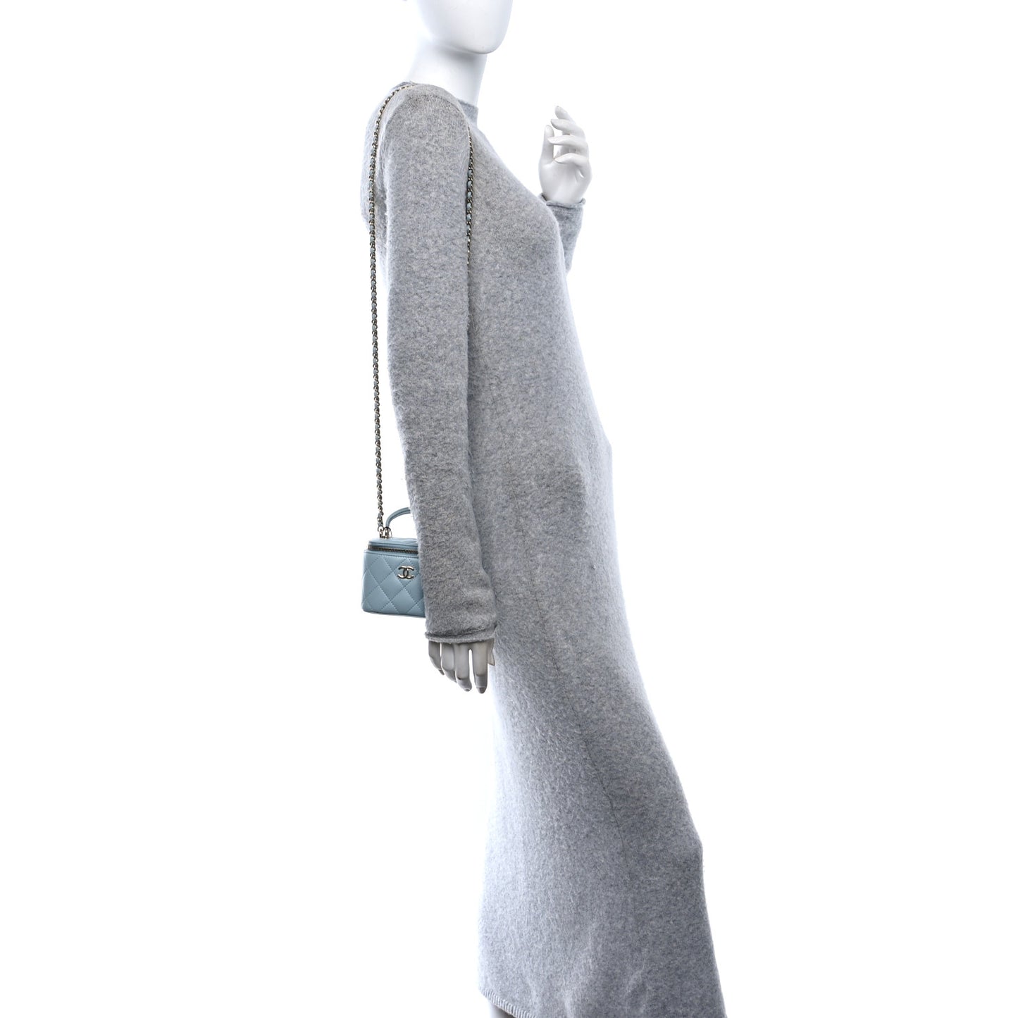 Chanel/ Bags/ Shoulder Bags /Chanel Lambskin Quilted Top Handle Mini Vanity Case With Chain Light Blue