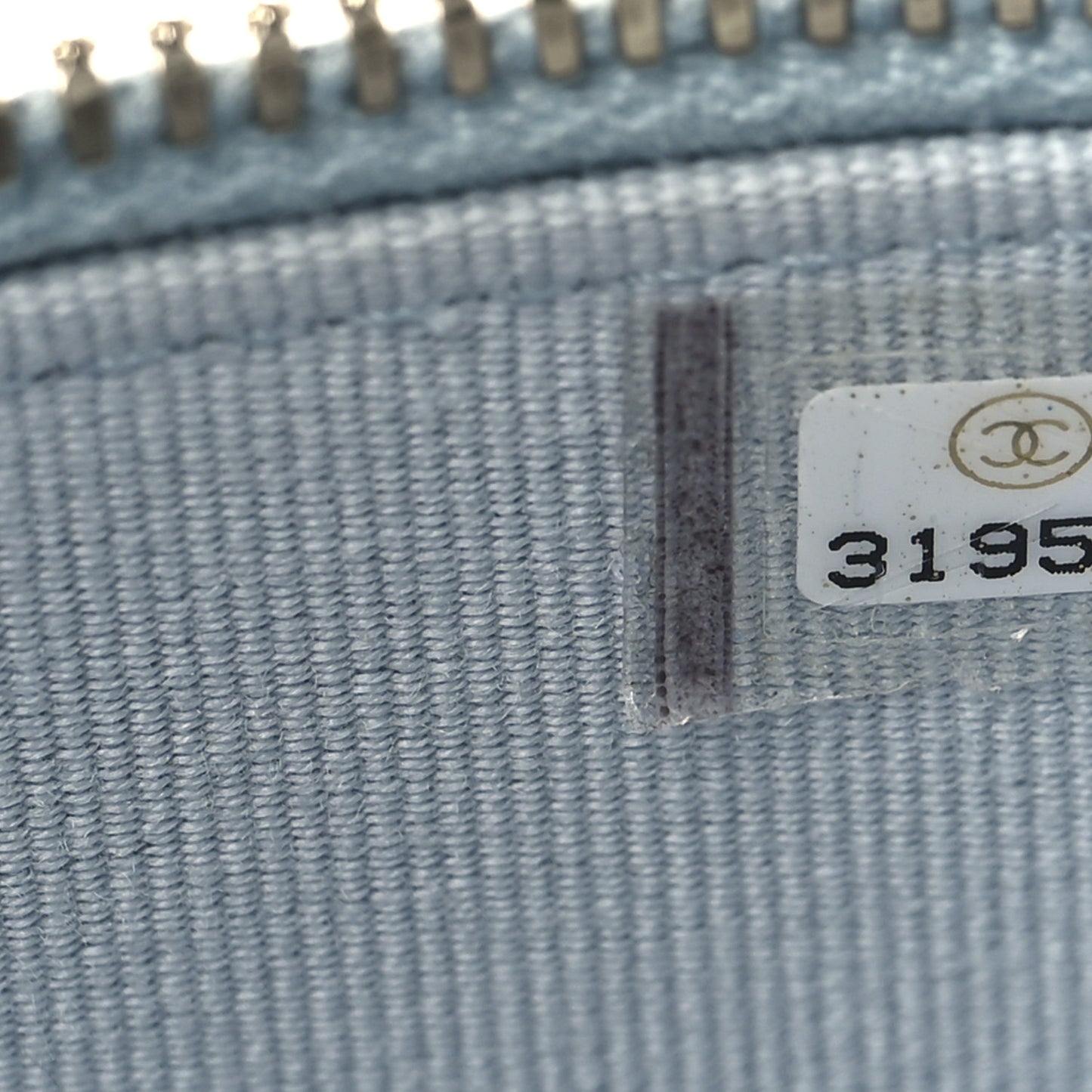 This is an authentic CHANEL Lambskin Quilted Top Handle Mini Vanity Case With Chain in Light Blue. This stylish crossbody is crafted of luxurious lambskin in light blue. The bag features a leather threaded gold chain-link shoulder strap and gold CC logo on the front panel. The handbag features a 3/4 wrap-around zipper that opens to a matching fabric interior.Follow this item for alerts. Chanel is a registered trademark of Chanel. FASHIONPHILE is not affiliated with Chanel.
